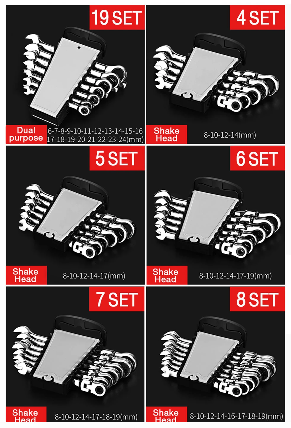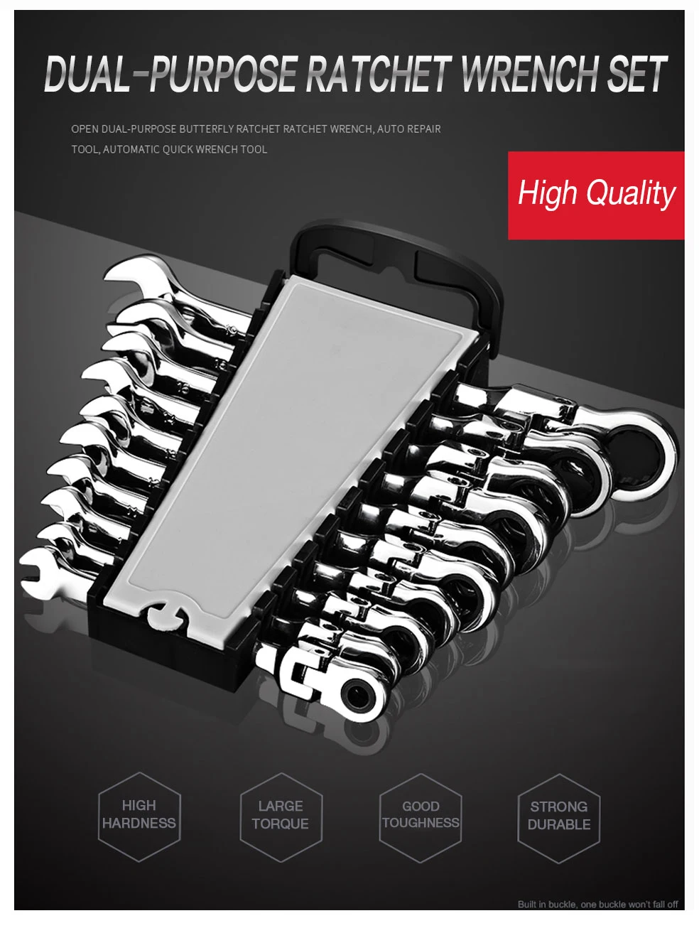 100% новый товар высокого качества. Изготовлен из хром-ванадия, тусклый полированный для матовой отделки, прочные ключи. Кольцо храповика 72 зубьев, высокая емкость крутящего момента Профессиональная термообработка для прочности и долговечности. Хромированная ванадиевая стальная ковка, шестерня и жевательная закалка, термообработка, жесткая износостойкая. Технология привода 72 зубьев, вращение на 5 градусов, облегчение использования в небольшом пространстве. Фиксированная головка Стойка для хранения входит в комплект (легко носить с собой) (переносится в любую точку) (значительно облегчает жизнь и работу)