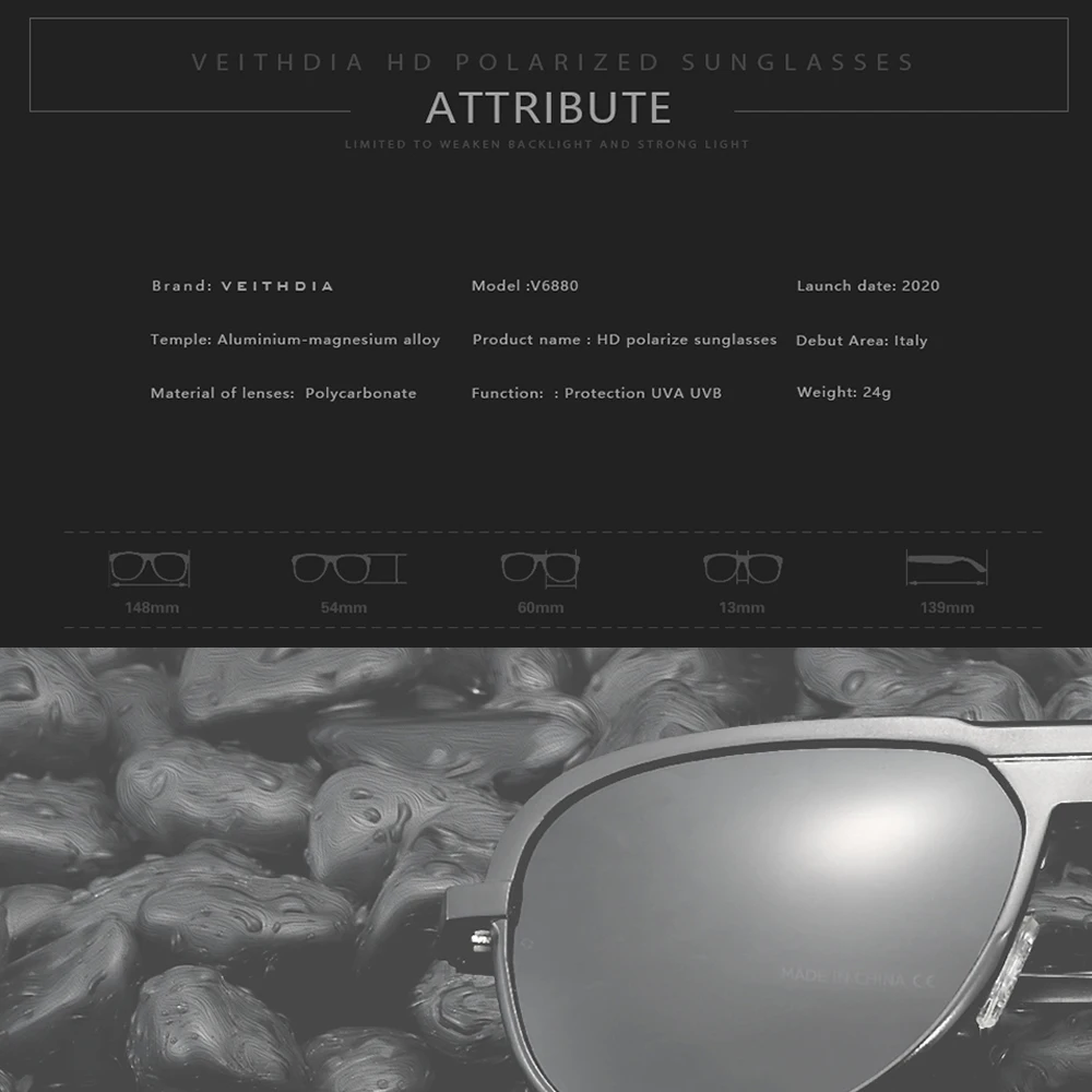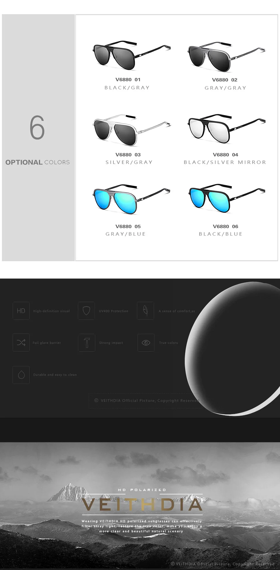 Мужские и женские солнцезащитные очки VEITHDIA, брендовые поляризационные солнцезащитные очки с линзами UV400 в винтажном стиле, модель 6880