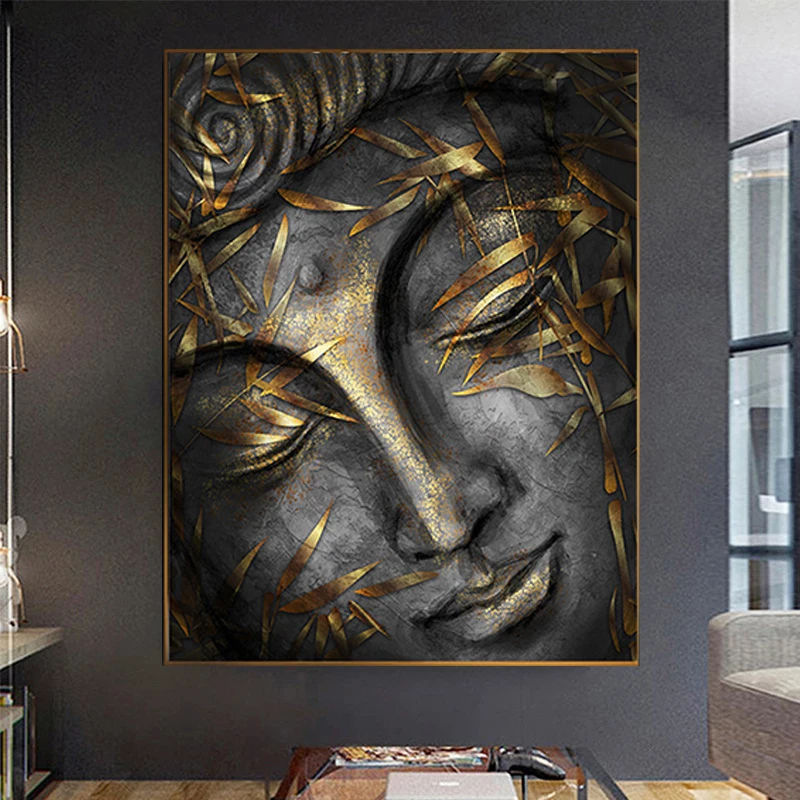 Золотая Статуя Будды, Картина на холсте, Женская фотография, Настен...