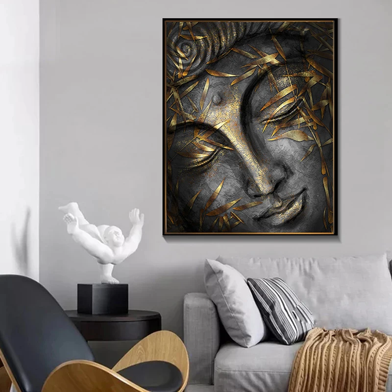 Религиозная Будда Металлическая Статуя холст живопись абстрактная ф...