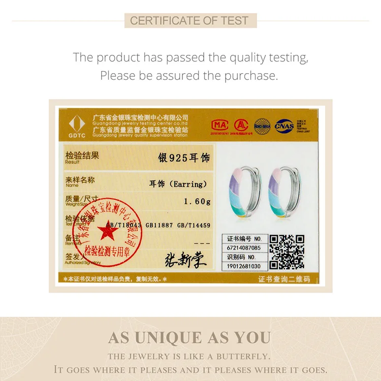 Женские серьги с эмалью Bamoer, серьги из настоящего серебра 925 пр...