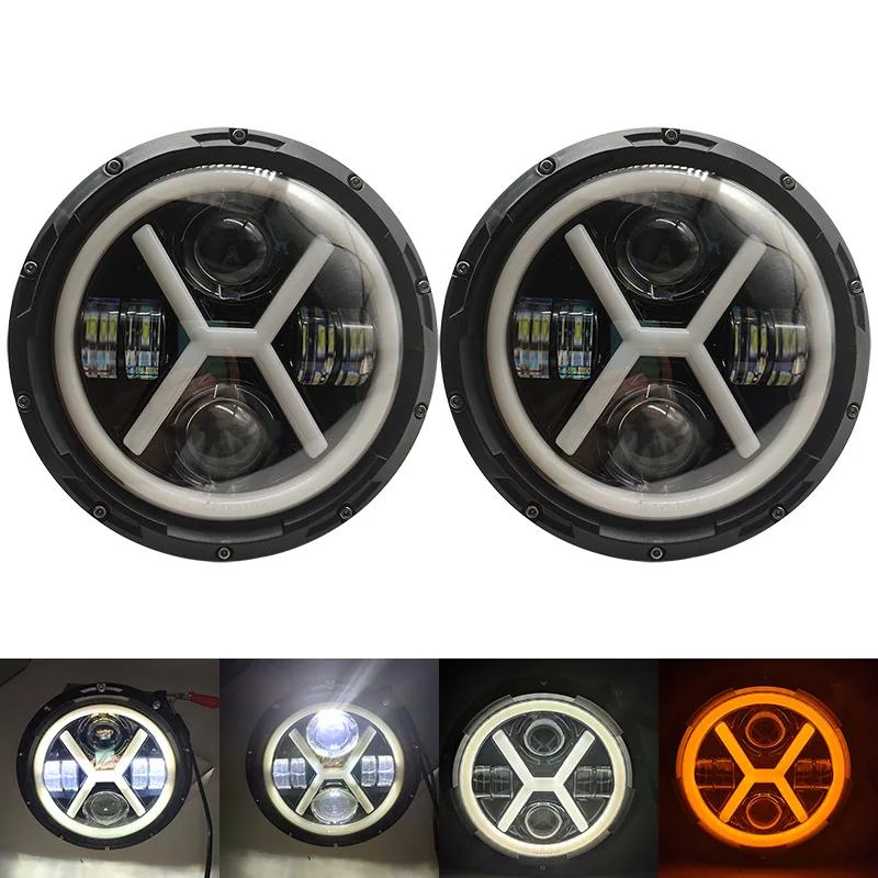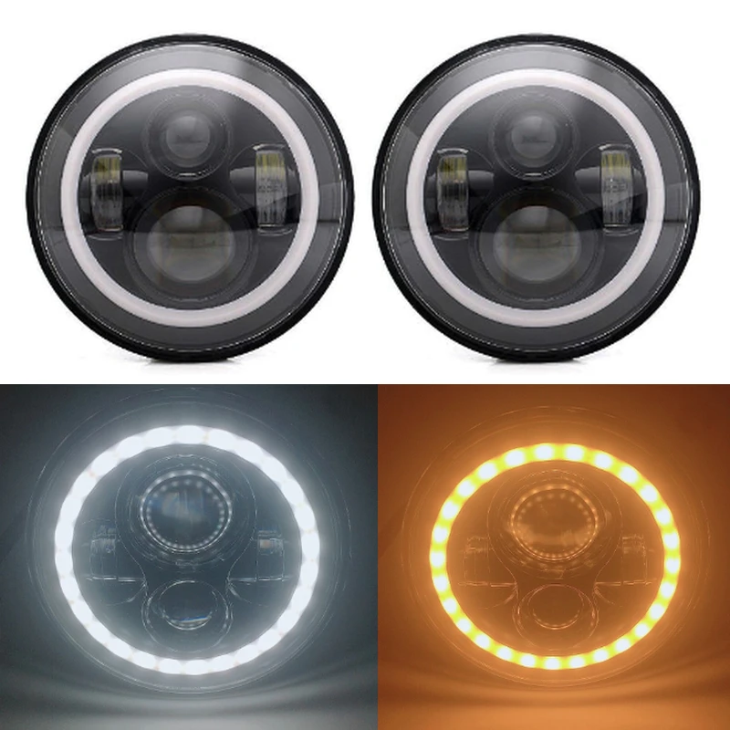 2 шт. 7 дюймов светодиодный фар H4 Hi/короче спереди и длиннее сзади) луч с Halo Ангельские глазки для Lada 4x4 urban Niva Jeep Wrangler JK Land Rover Defender Hummer