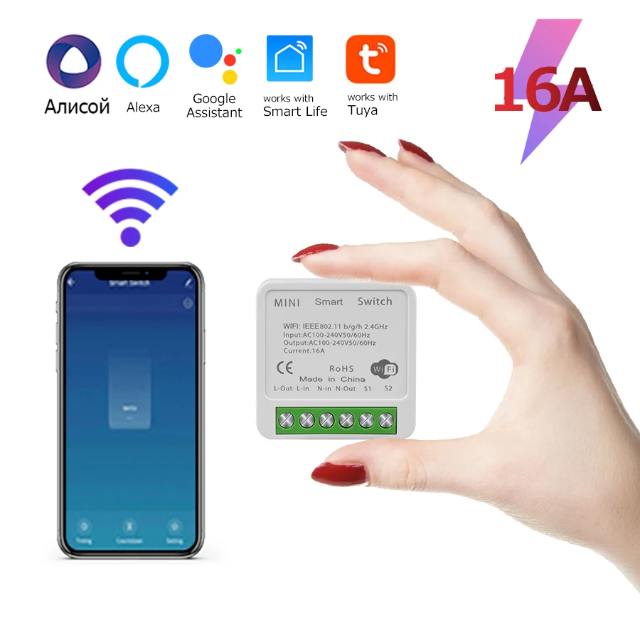 Умный выключатель Tuya, 16 А, Wi-Fi, голосовое управление