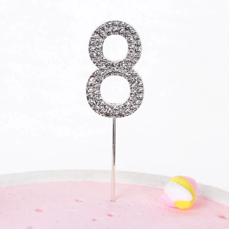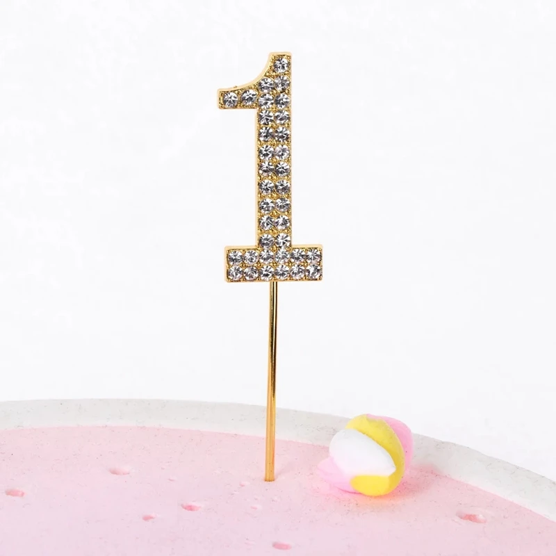 1 шт. Блестящий сплав Стразы топперы для торта Baby Shower День рождения украшение Свадьба Золотой Серебряный Цифровой торт десерт Декор