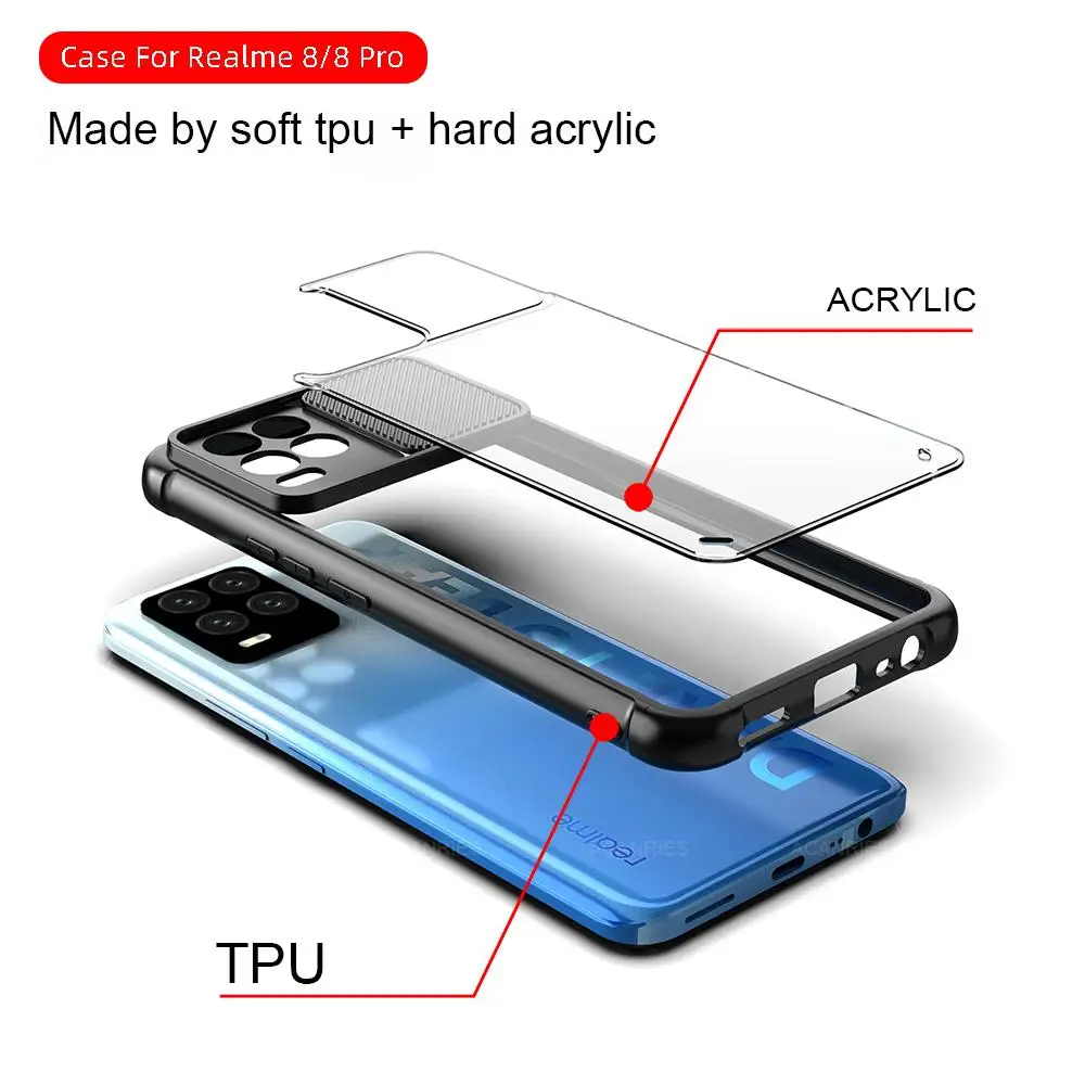 Прозрачная слайд камера, защитная фотокамера для Oppo Realme 8 Pro 4g C21 Realme8 A5 A9 2020 C3 5 5i 6i A53 A52 A72 A92 A54 A74, чехол