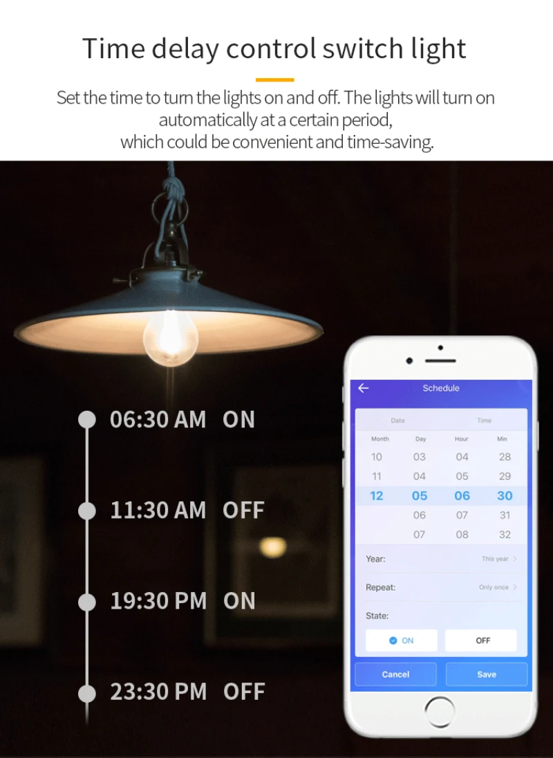 Лампа может регулировать яркость через приложение eWeLink по желанию.