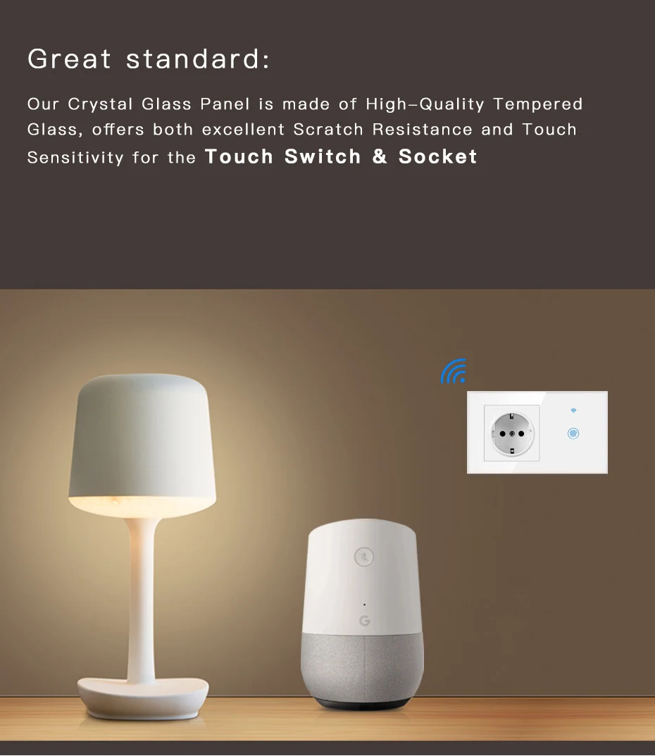 1. Доступны популярные цвета: белый, черный, золотой, серый2. Наш Wifi домашний разъем и переключатель являются огнеупорными и водонепроницаемыми. Защита от электрического удара для вашей семьи.3. Изготовлен из высококачественного закаленного стекла и поликарбоната, обеспечивает отличную устойчивость к царапинам.4. Различные испытания качества во время производства, чтобы гарантировать, что каждый переключатель работает хорошо, прежде чем он будет доставлен клиентам.5. Элегантный вид, отлично подходит для многих современных стилей декора. Его можно применять для гостиной, спальни, коридора, кухни, ванной комнаты, офиса и так далее.
