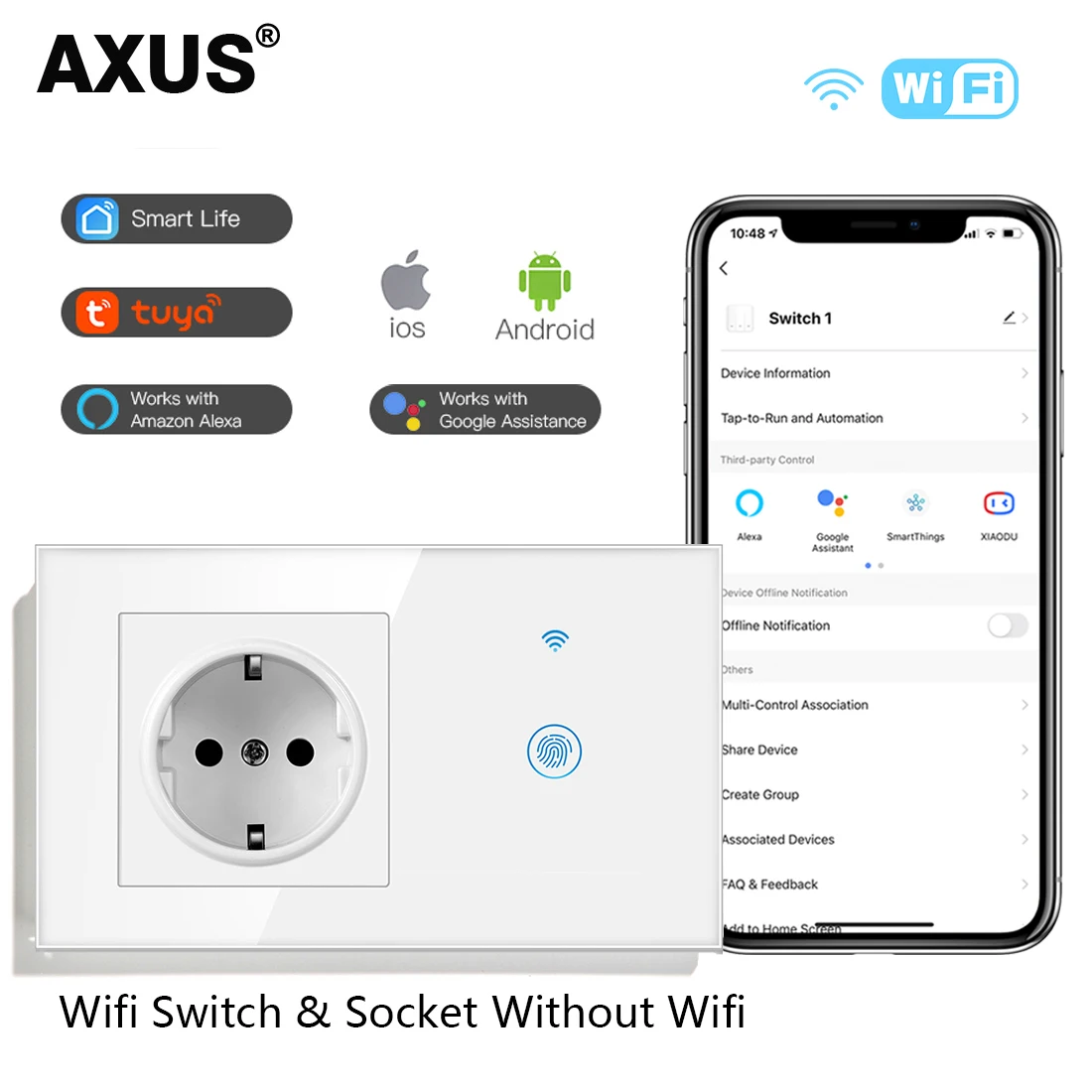 Умный выключатель AXUS Tuya с Wi-Fi, сенсорный настенный выключатель, стеклянная панель с европейской розеткой, 123 клавиши, умная жизнь, поддержка Alexa Google home