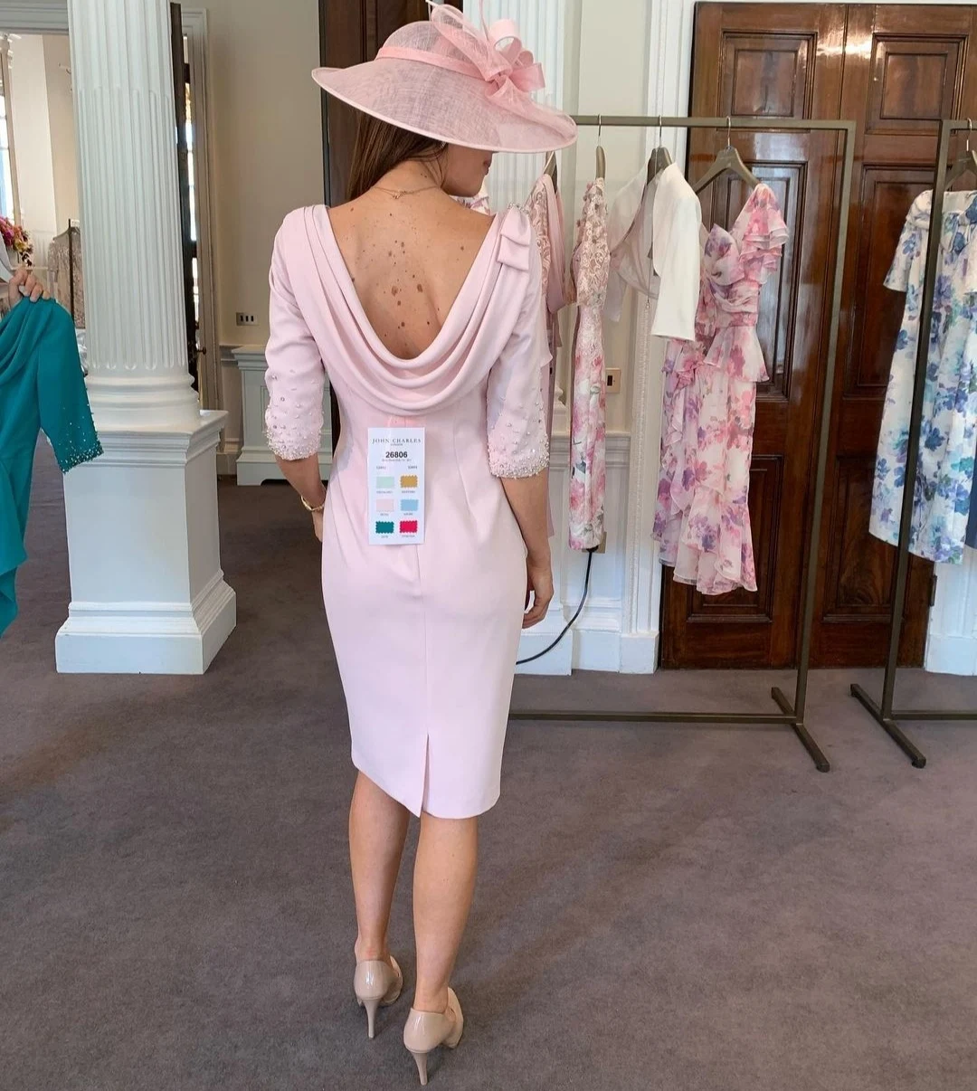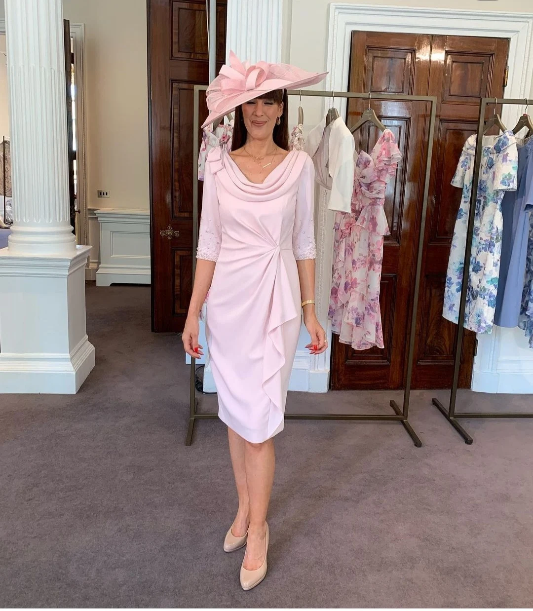 Женское Плиссированное Платье-футляр, элегантное короткое розовое платье для матери невесты с V-образным вырезом и открытой спиной, длиной до середины икры