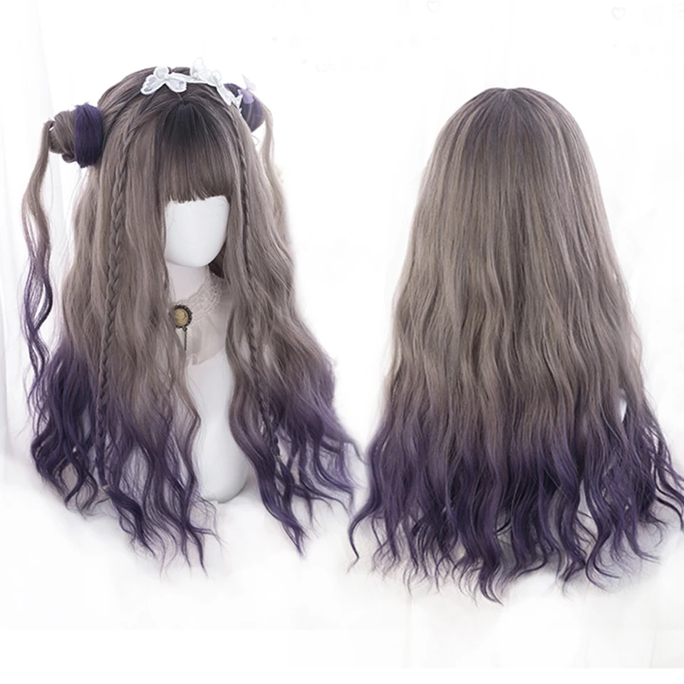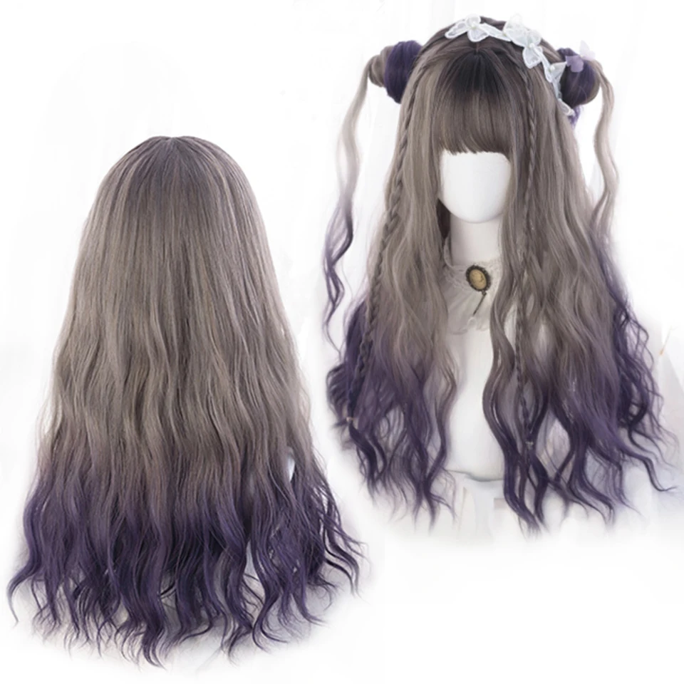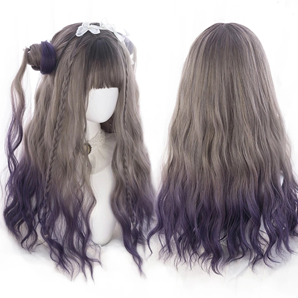 Длинный волнистый объемный Серебристый Фиолетовый синтетический парик HOUYAN, термостойкий синтетический искусственный парик для вечевечерние в стиле "Лолита", серебристый синий