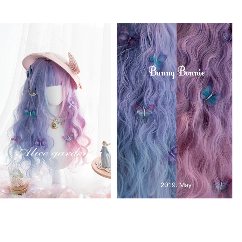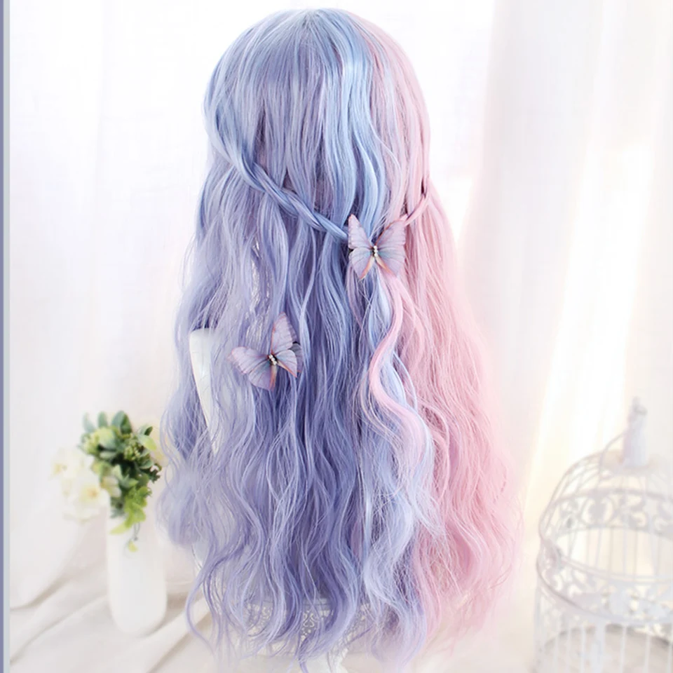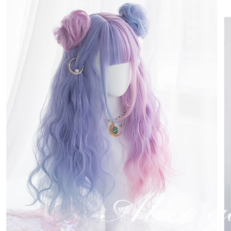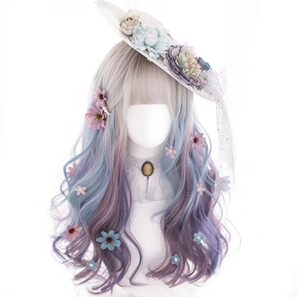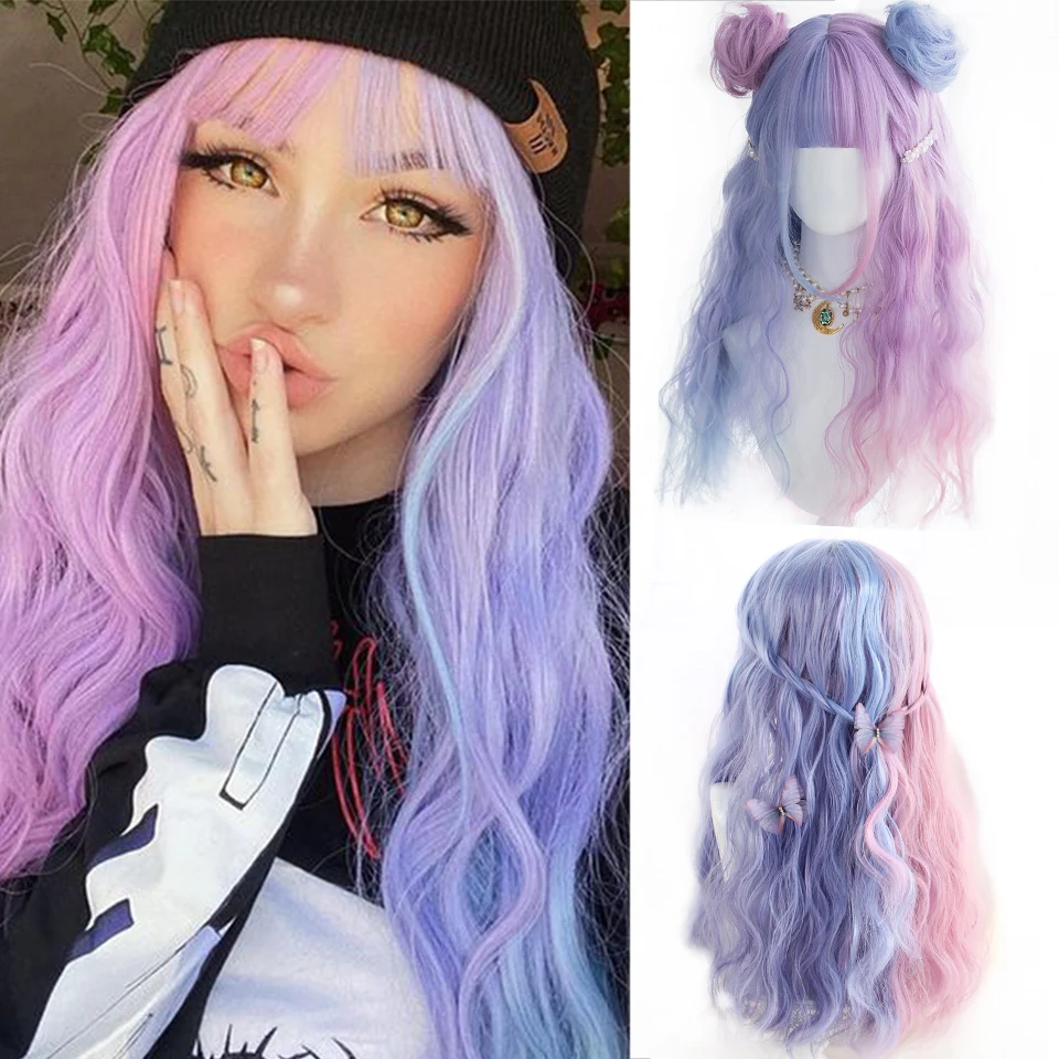 Длинная кудрявая розово-синяя челка HOUYAN с зажимом маленький пари...
