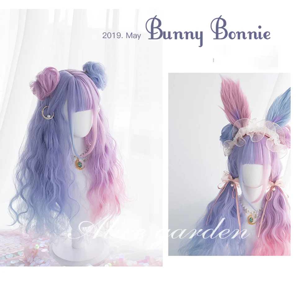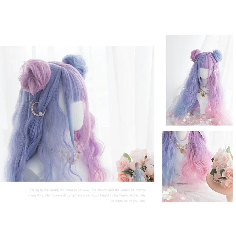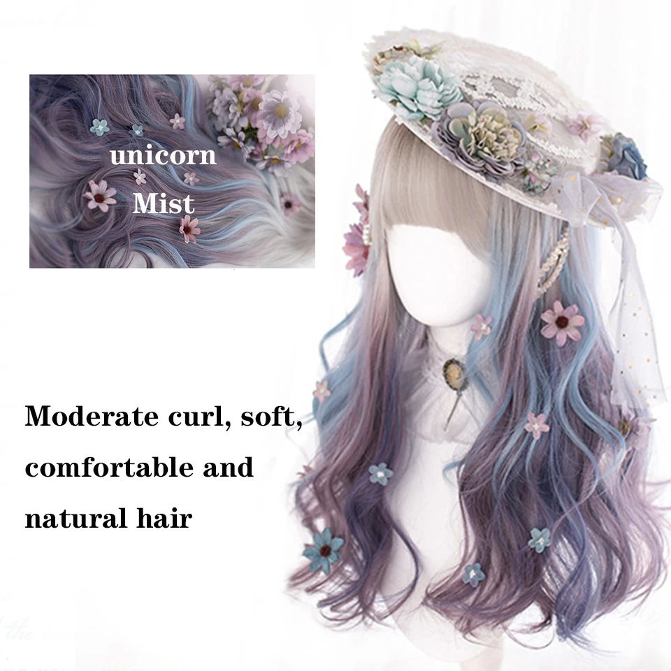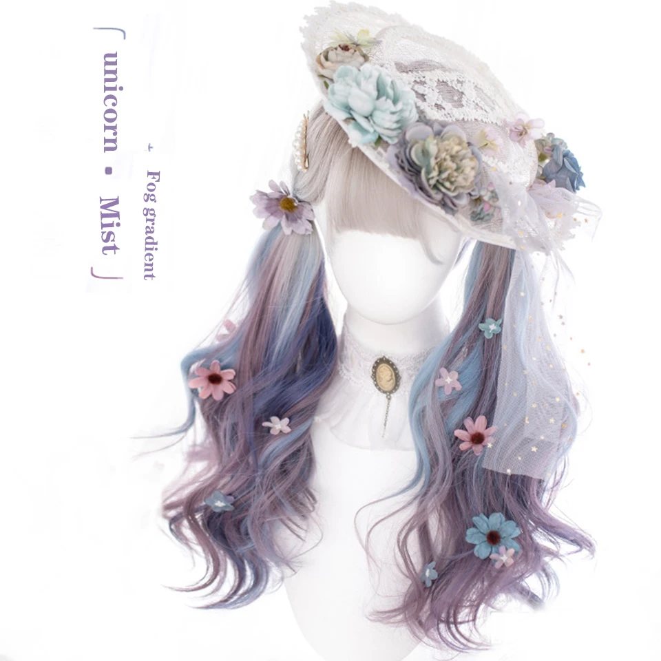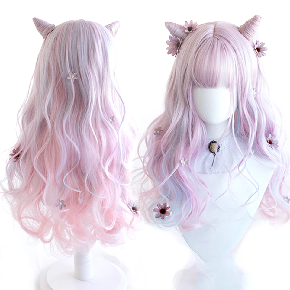 Длинная кудрявая розово-синяя челка HOUYAN с зажимом маленький пари...