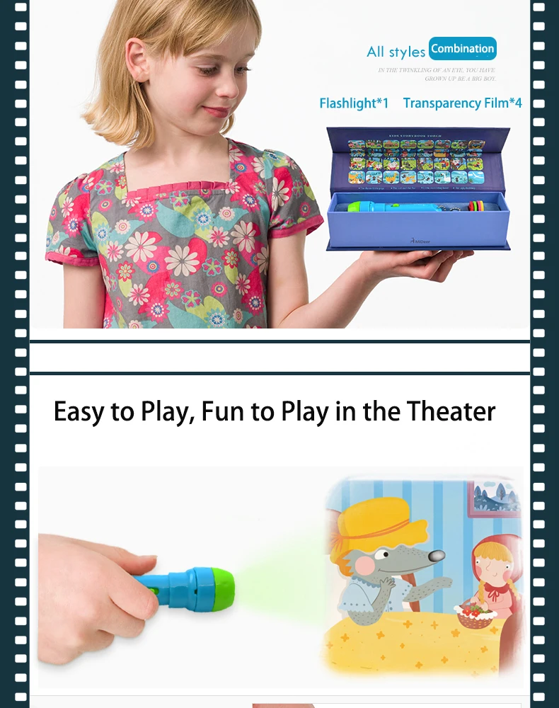 Книга с рассказами, факфонарь ный проектор, калейдоскоп, детские иг...