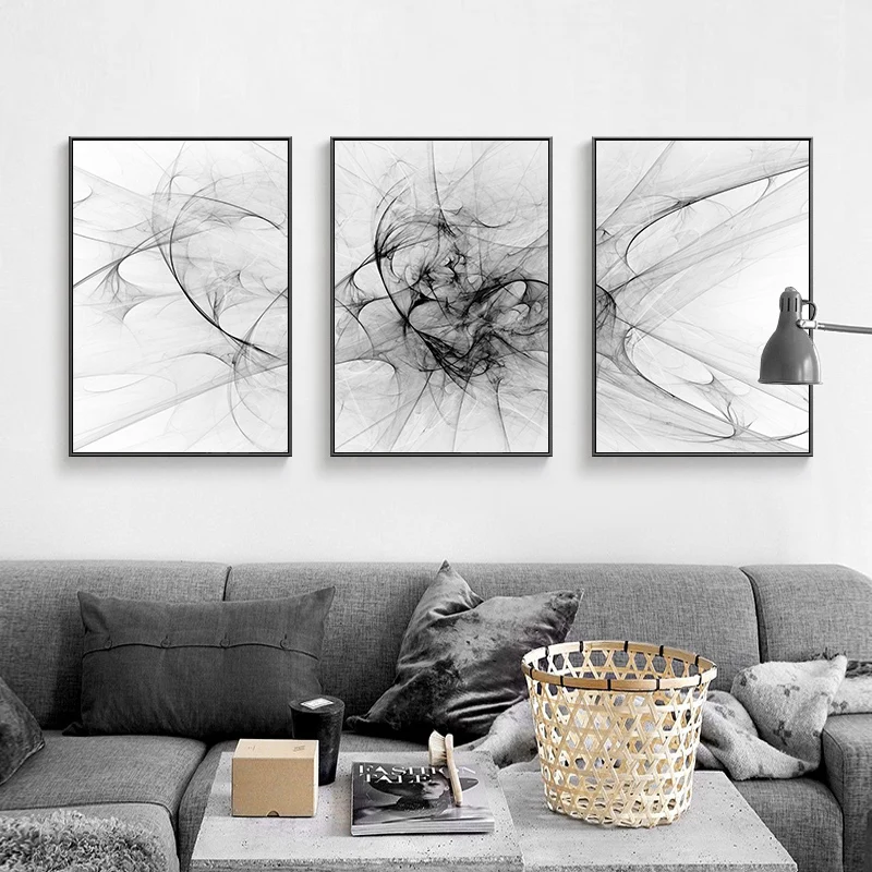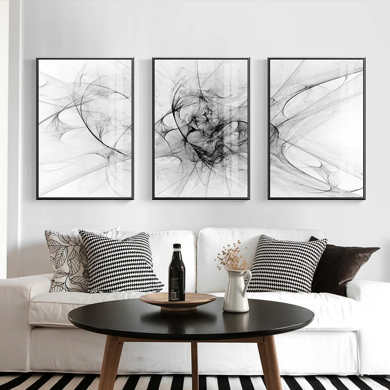 Современные минималистичные черно-белые линии абстрактные чернила триптих декоративная живопись HD живопись основной плакат картина холст