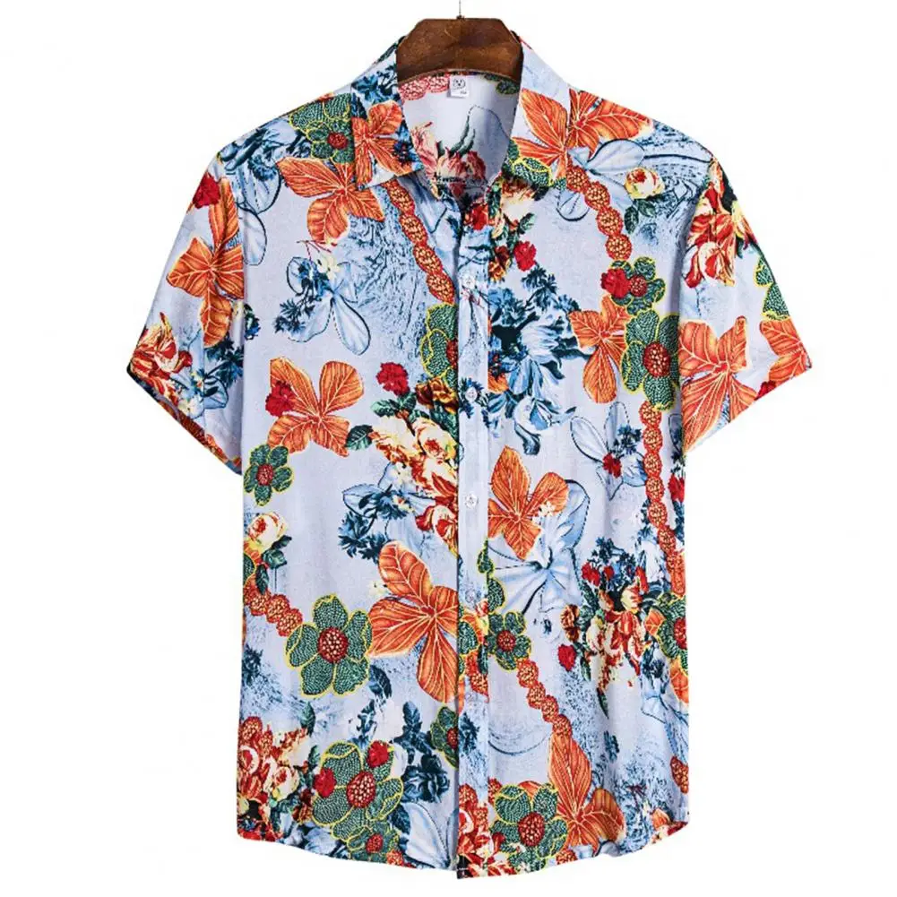 Рубашка мужская с тропическими пуговицами, Пляжная сорочка с цветочным принтом, дышащий топ с отложным воротником и коротким рукавом, повседневный пляжный топ