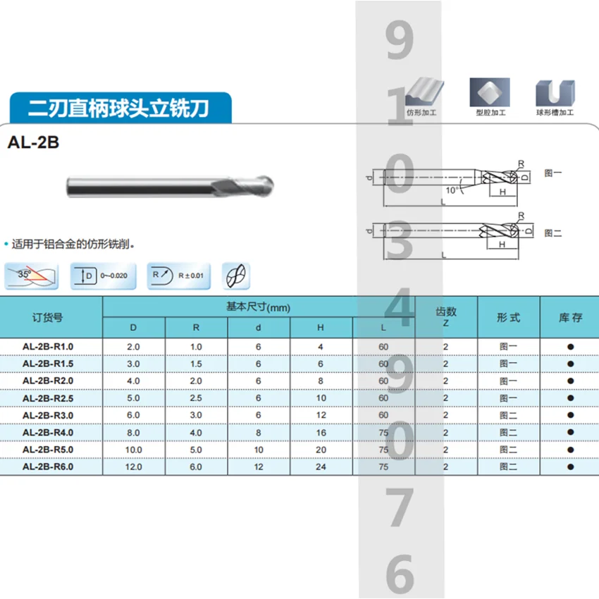 ZCC.CT AL-2B-R1.0AL-2B-R1.5AL-2B-R2.0AL-2B-R2.5AL-2B-R3.0AL-2B-R4.0AL-2B-R5.0AL-2B-R6.0 Концевая фреза с двумя канавками, 1 шт.кор.