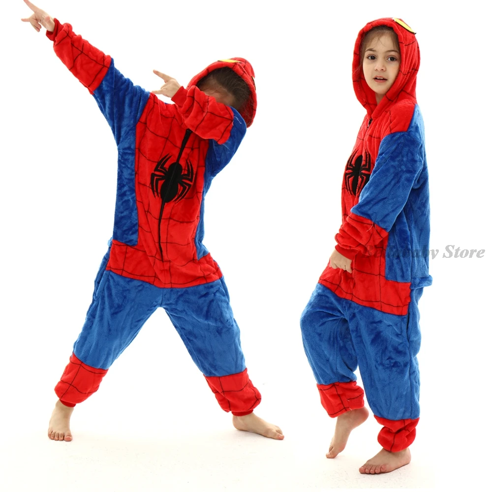 Пижама-кигуруми паук для мальчиков и девочек, костюм единорога, зимняя мягкая теплая детская пижама, аниме герои, косплей, Детский комбинезон с животными