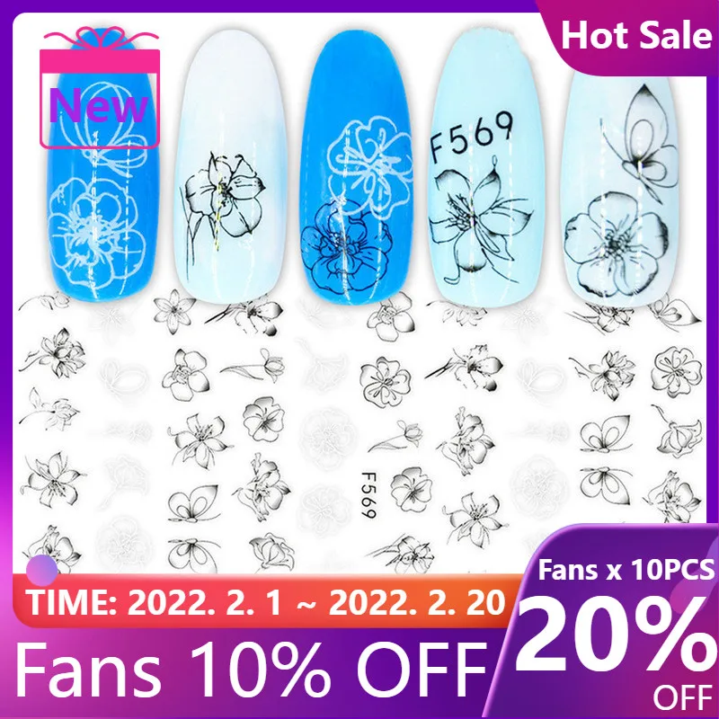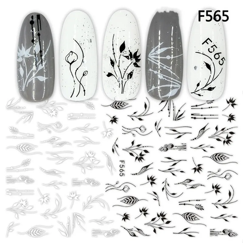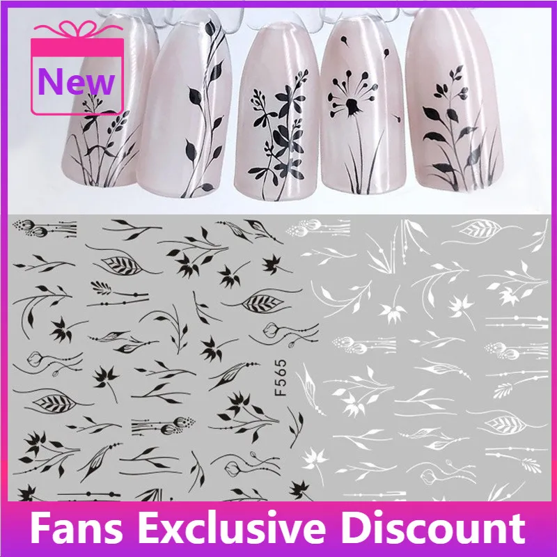 Новинка 2021, черно-белые наклейки для ногтей, цветы, мандала, лист, геометрия, наклейки для ногтей, фольга, дизайн, маникюр