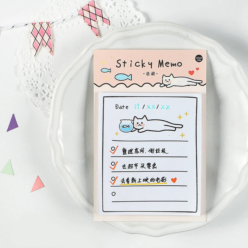 30 листов, блокноты для записей на клейкой основе с изображением солнечного дня, девушки и кошки