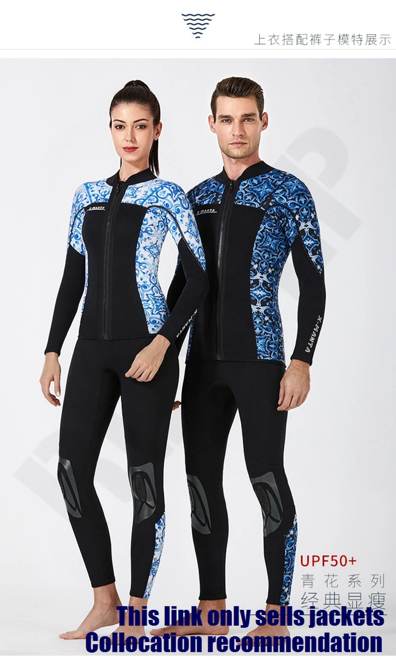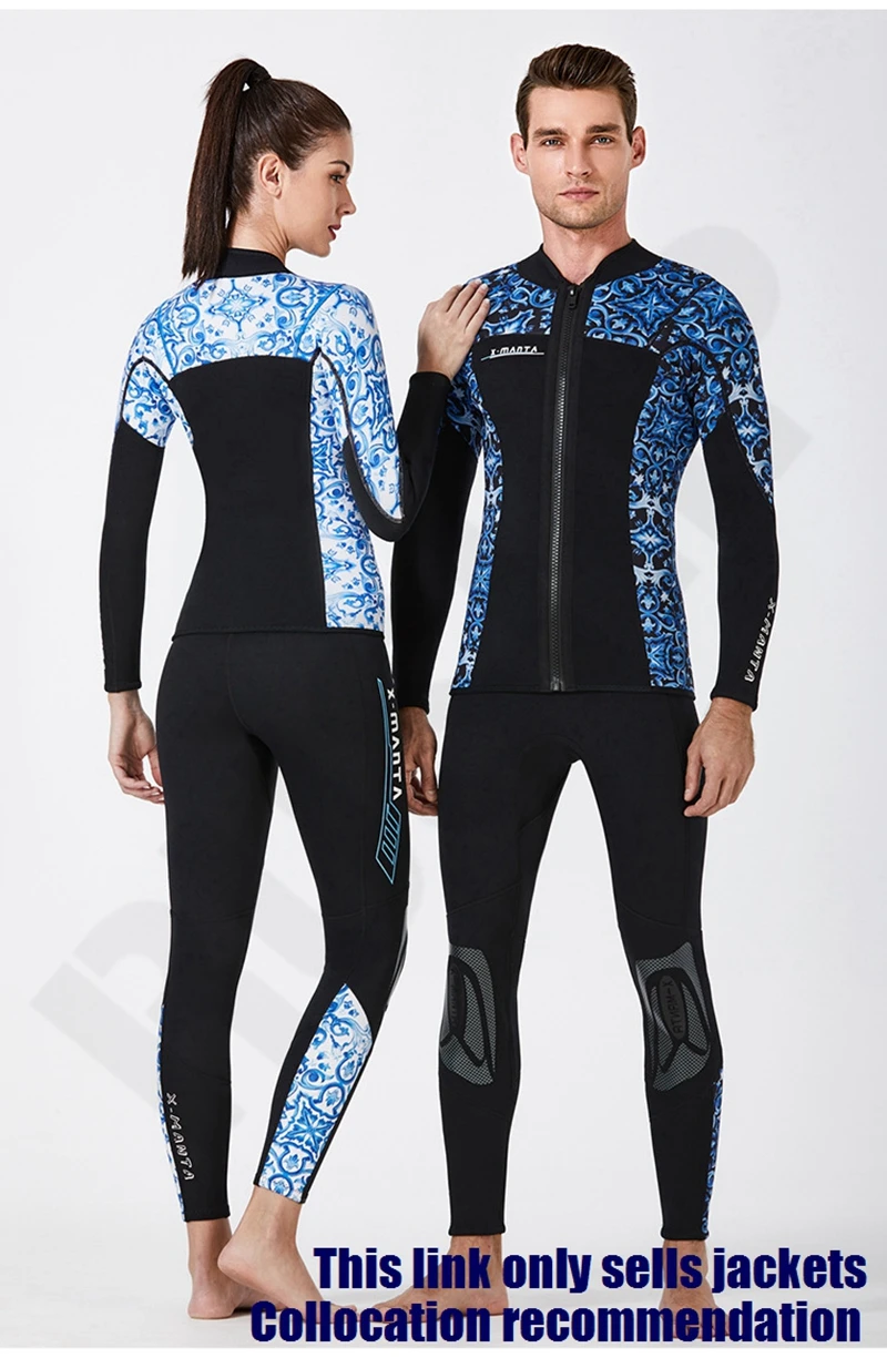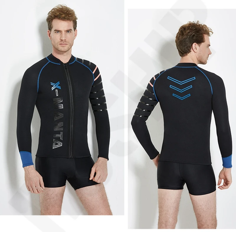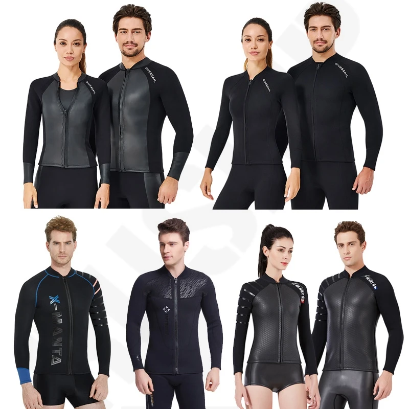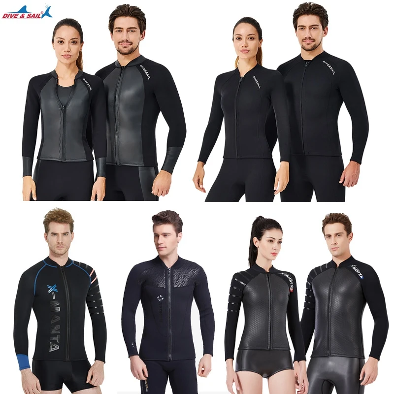 Мужской женский и мужской гидрокостюм, топ, 3 мм, 2 мм, неопрен, длинный рукав, мокрый костюм, куртка, передняя молния, рубашка для дайвинга, для плавания, серфинга, лодки, парусного спорта, пляжа