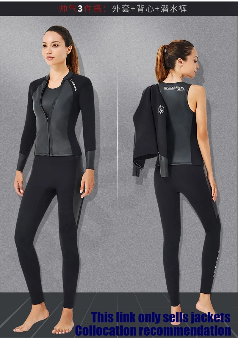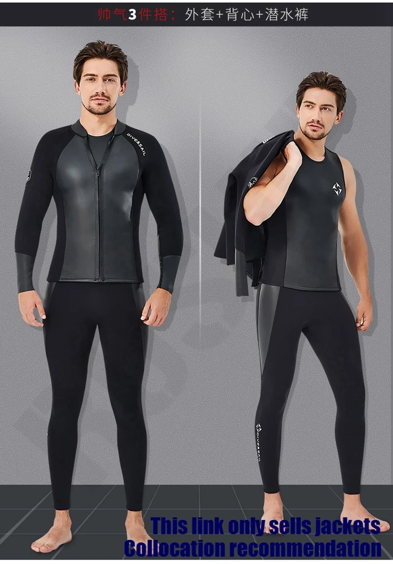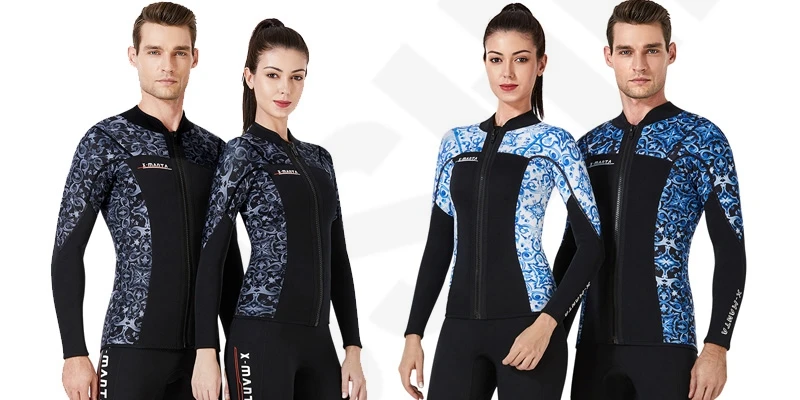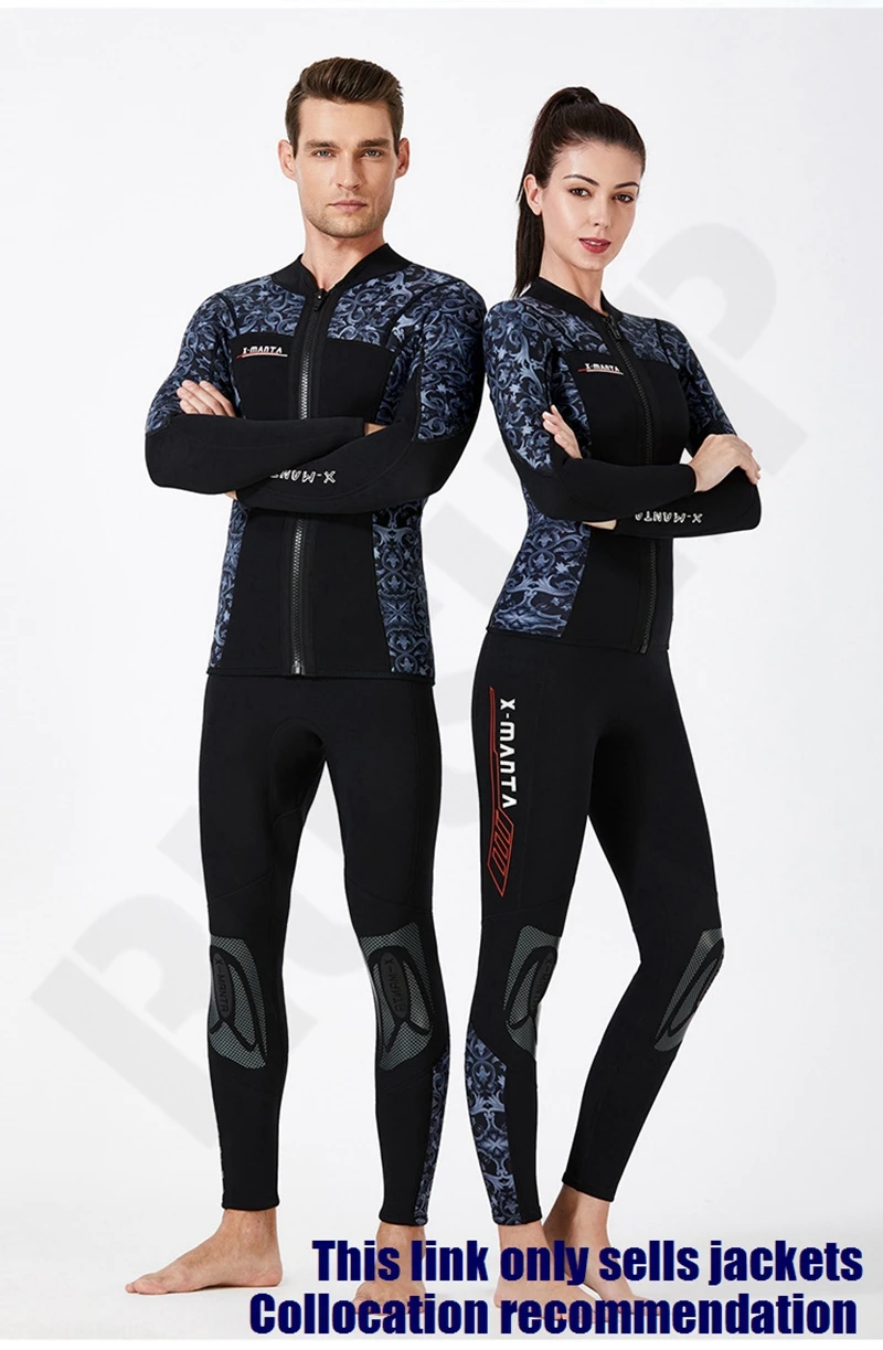 Мужской женский и мужской гидрокостюм, топ, 3 мм, 2 мм, неопрен, длинный рукав, мокрый костюм, куртка, передняя молния, рубашка для дайвинга, для плавания, серфинга, лодки, парусного спорта, пляжа