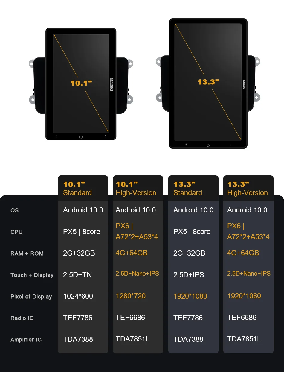 Автомобильный DVD-плеер, поворотный плеер 1920*1080 Tesla 13,3 "PX6...