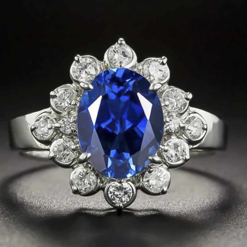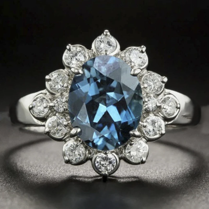 Роскошное женское кольцо стразы из циркония с синим кристаллом сере...