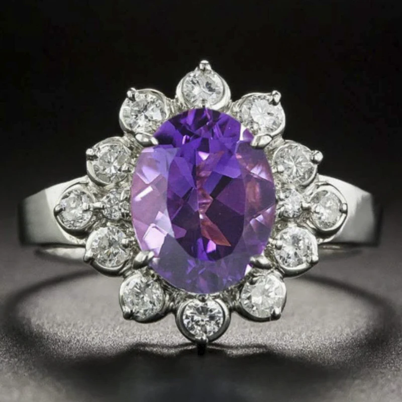 Женское кольцо с крупным фиолетовым овальным кристаллом, Винтажное ...