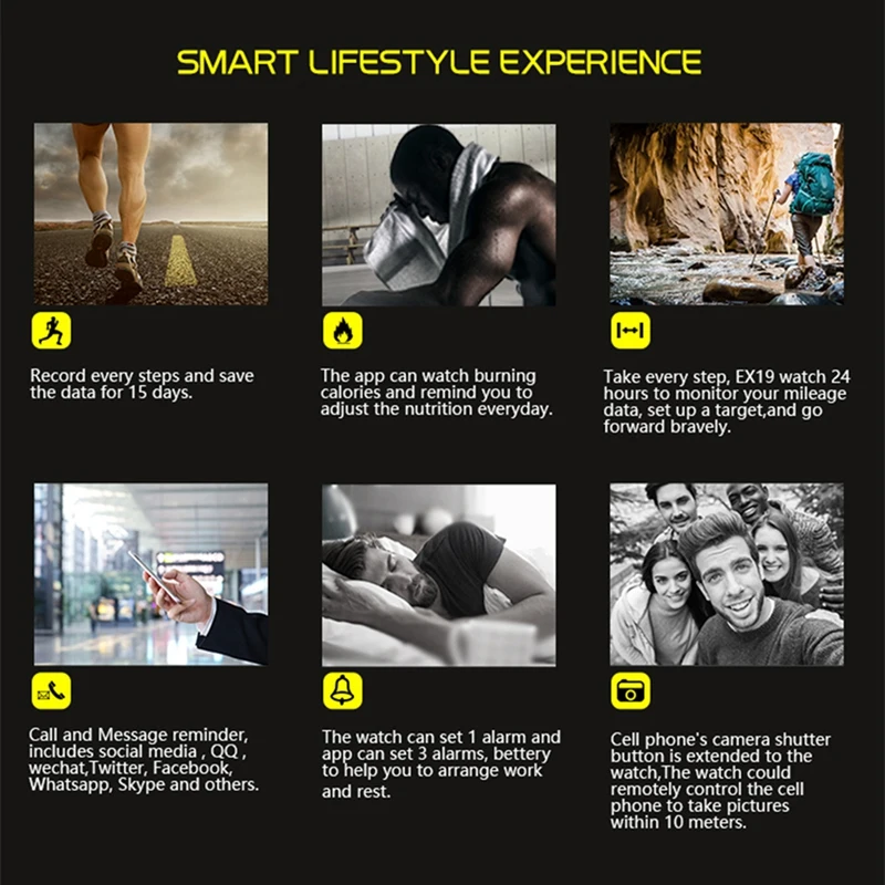 EX19 Смарт-часы 1,21 дюймов экран BT4.0 водонепроницаемые часы Шагомер Спорт управление SMS уведомления наручные часы
