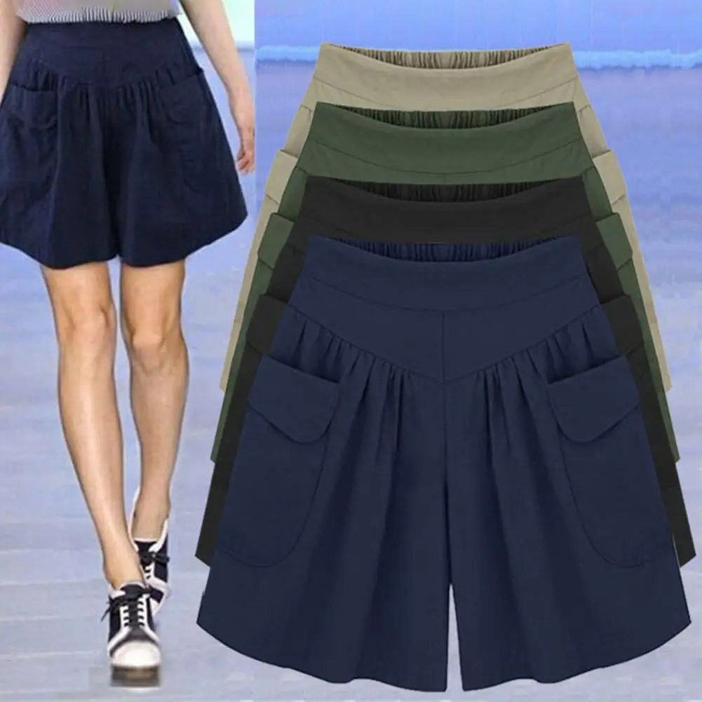 Шорты трапециевидные женские, однотонные свободные короткие штаны для улицы
