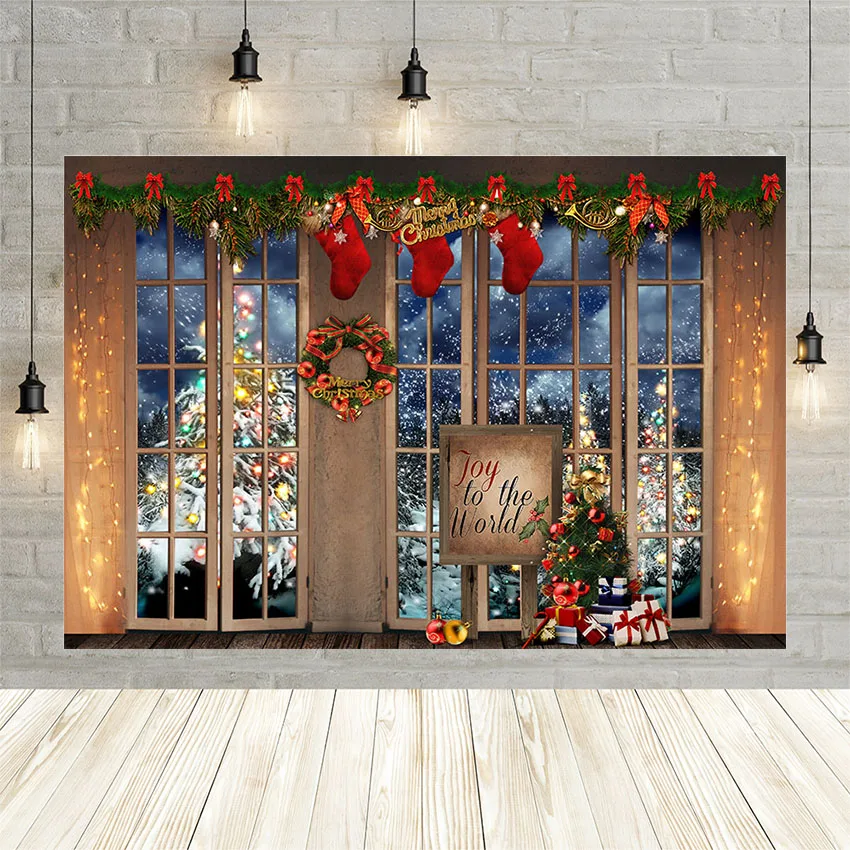 Декоративный фон Avezano с рождественскими мотивами, деревянная дверь, окно, зимнее звездное небо, снежинка, Блестящее дерево, фон для фотосъемки