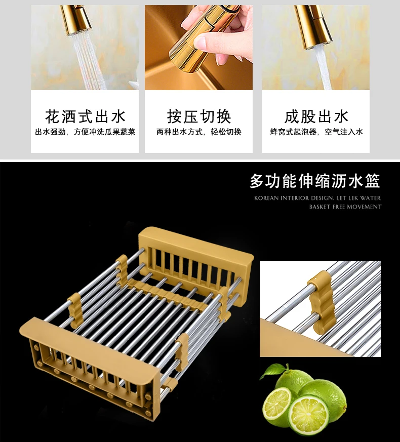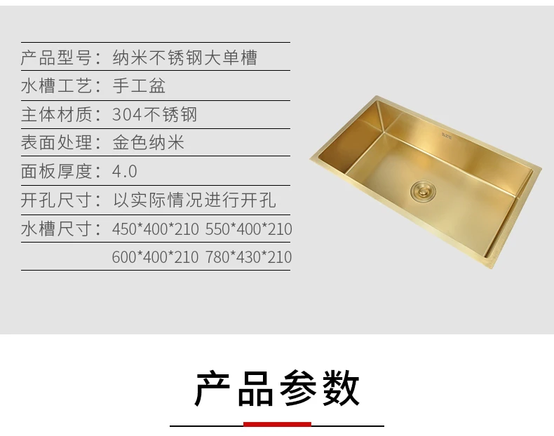 Золотистый кухонный стол для раковины Nano 304, большой толстый ручной маленький умывальник