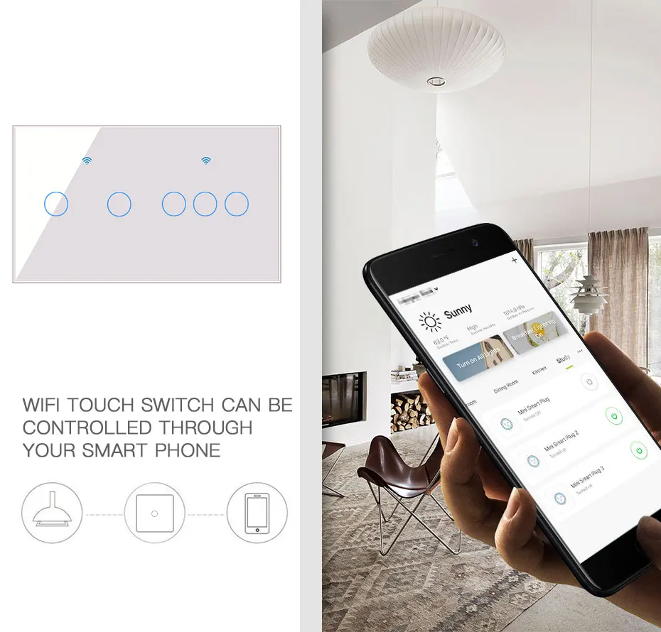 [Приложения]: "Smartlife" для справки. Или выберите другие обычно используемые.[Защита безопасности]: Сенсорная панель из закаленного стекла, безопасная и стильная, водонепроницаемая, влагостойкая и противопожарная, избегайте риска поражения электрическим током.[Умный]: Установите интеллектуальные узоры сцены или добавьте любые необходимые режимы, которые подходят для большинства сценариев. Такие как режим конференции, исходящий режим, режим отдыха и т. д.[Светодиодный ночной Светильник]: это красный при включении дома светильник и он синего цвета при выключении. Но мягкий светильник не влияет на ваш сон.[Функция таймера]: Установите время заранее, и светильник все еще может использоваться нормально без сети, но с непрерывным электричеством.[Легко устанавливается]: гладко на ощупь и удобно чистить.