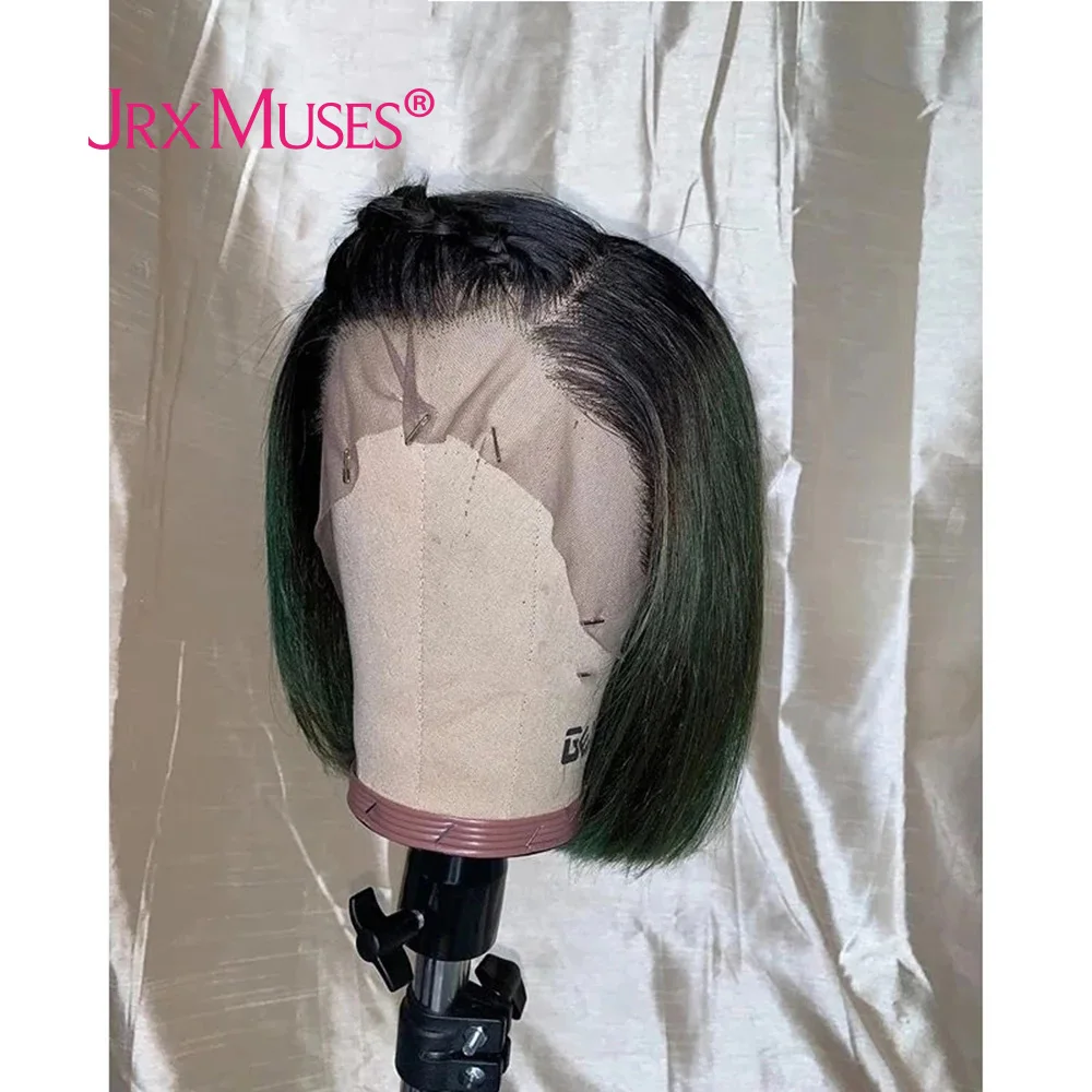 Темно-зеленые короткие парики с эффектом омбре, человеческие волосы, парики с глубокой T-образной частью на сетке, предварительно выщипанные безклеевые бразильские парики без повреждений, парики из человеческих волос для женщин