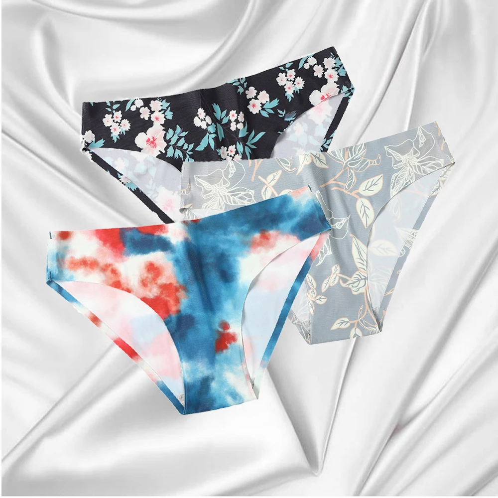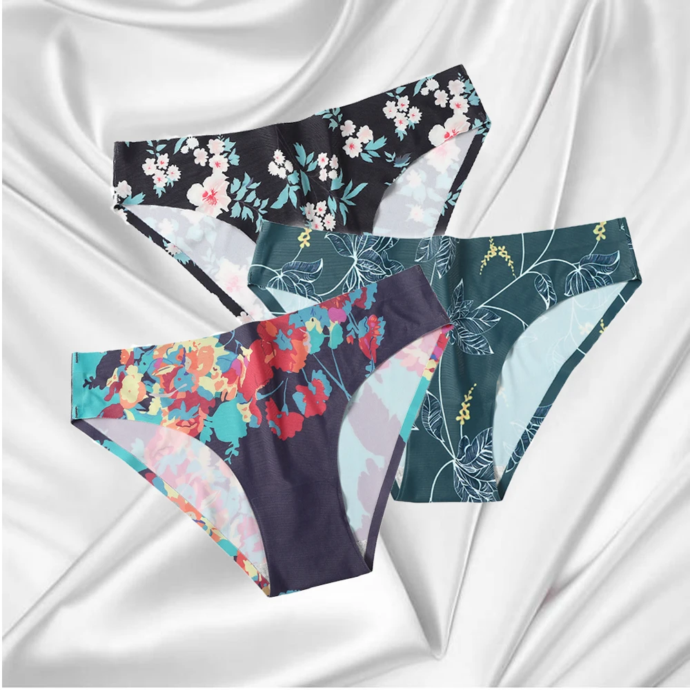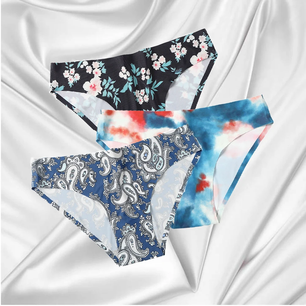 Трусы женские бесшовные из женские сексуальные трусики-танга хлопка с принтом, 3 шт.