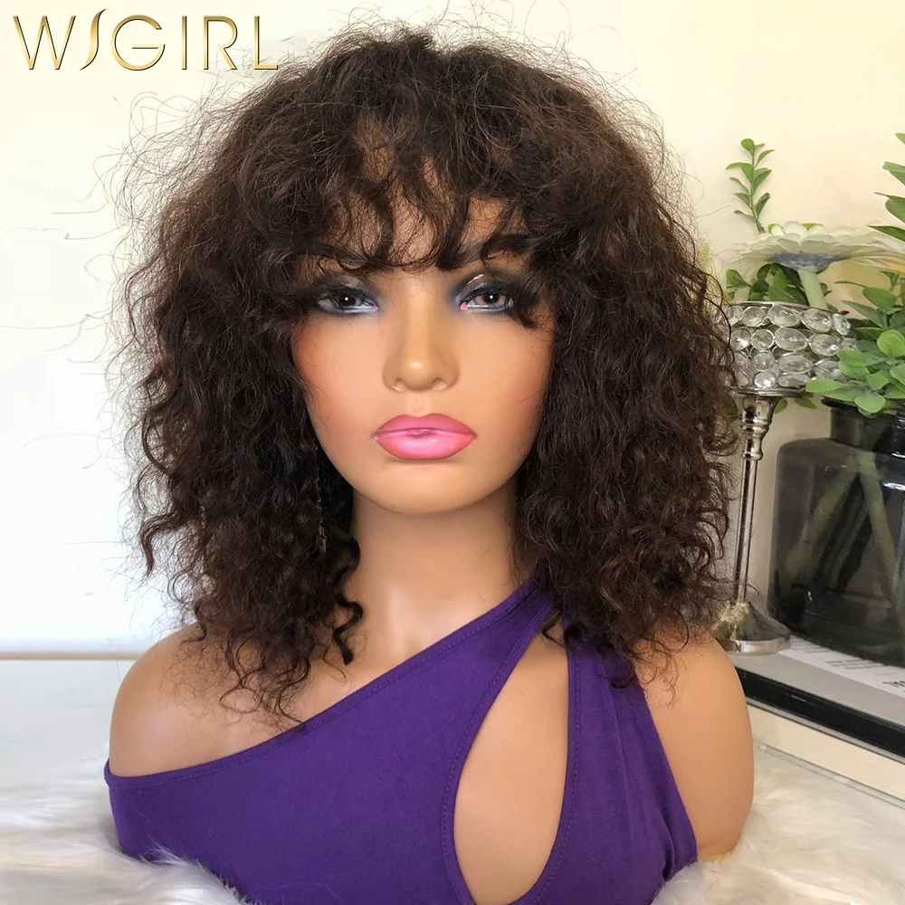 Парик из вьющихся бразильских волос коричневого цвета с челкой, плотность 180%, волнистые, без клея, парики из человеческих волос для черных женщин, парик без кружева