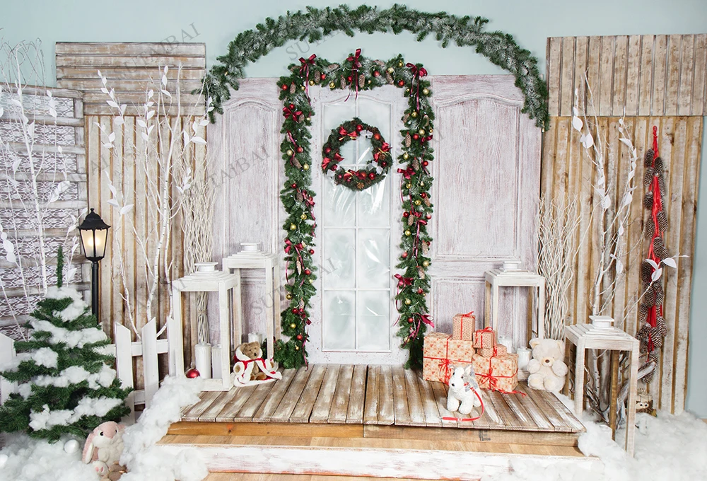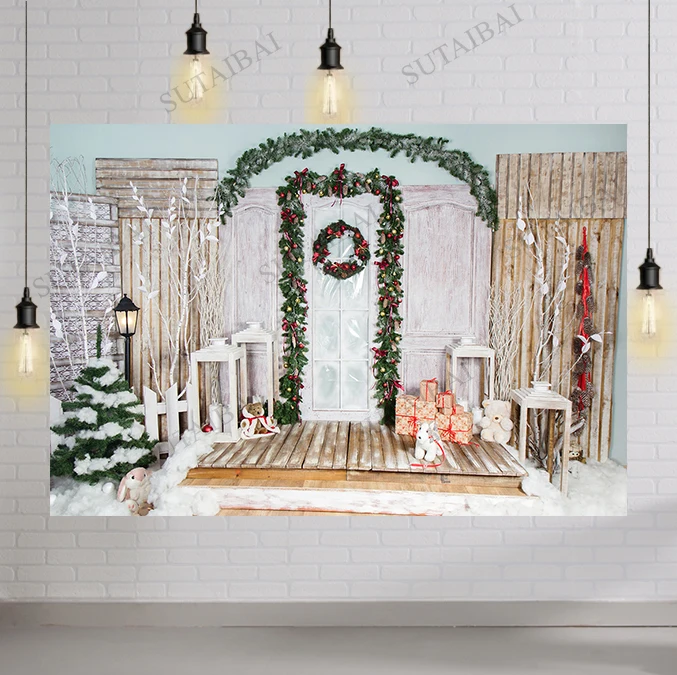 Фон для фотосъемки в помещении Рождественский венок деревянная дверь Рождественская елка украшение для вечеринки реквизит для детской фотобудки