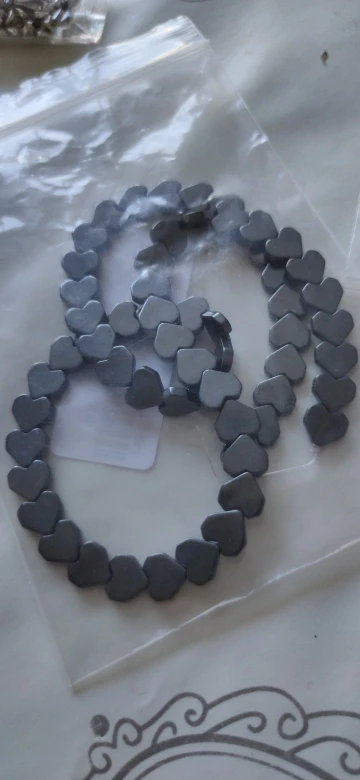 Бусины Из Натурального Гематита с черным сердечком и принтом ракушк...