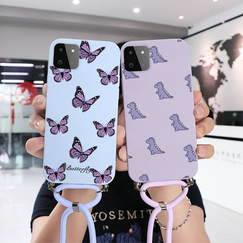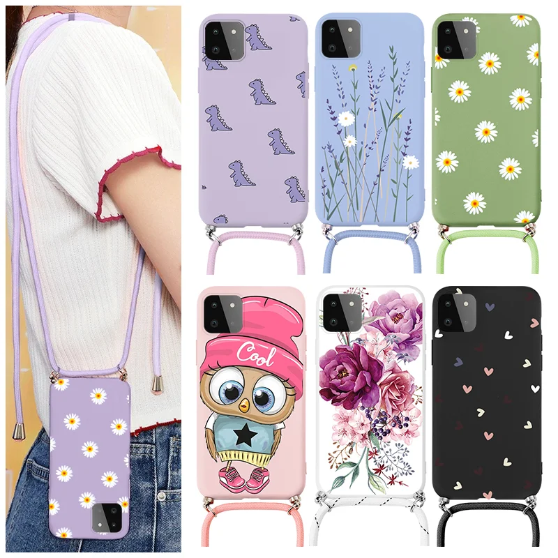 Чехол для Samsung Galaxy A22 A 22, искусственный чехол с цветами для Samsung GalaxyA22 GalaxyA 22, цепочка, ожерелье, ремешок, шнур, ремешок, бампер Etui