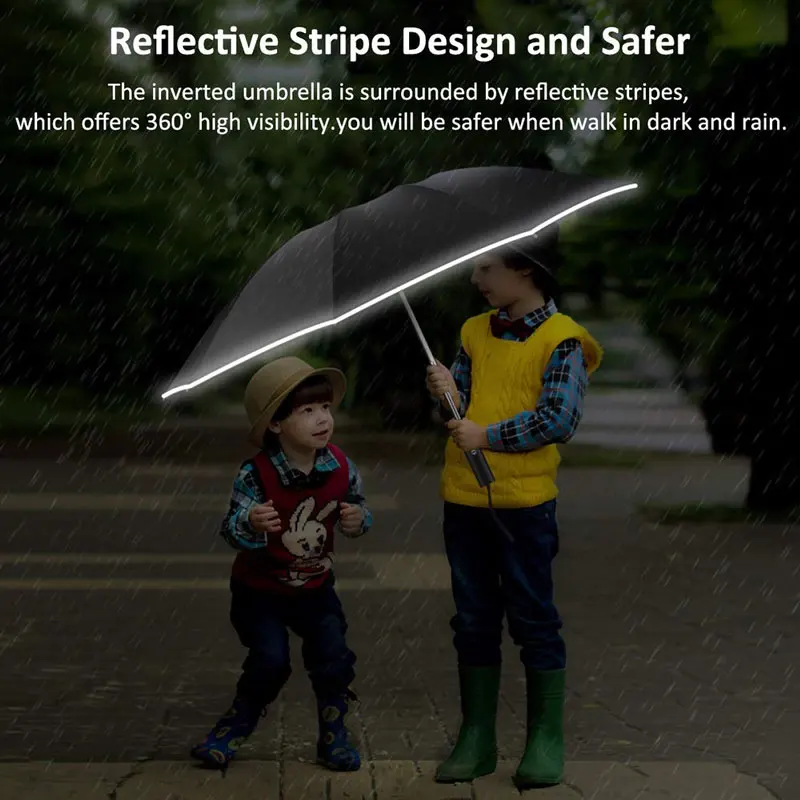 Ветрозащитный автоматический зонт с обратной резьбой, большие складные переносные зонтики 10 к с отражающей полосой для автомобиля, от дождя, для мужчин и женщин