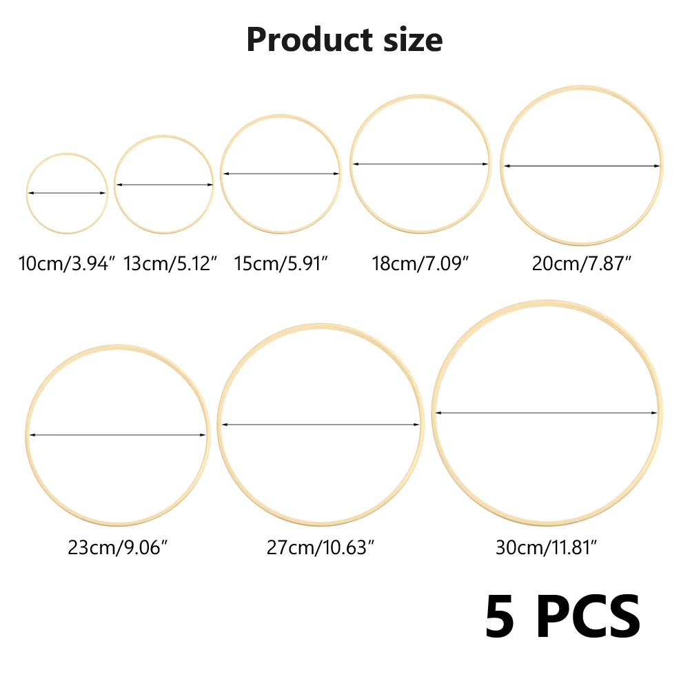 Различные размеры. 8 различных размеров бамбуковых обручей для удовлетворения ваших различных потребностей, отлично подходит для изготовления рождественских венков, красивых цветочных обручей, свадебных венков, макраме настенных подвесок или самодельных обручей для Ловца снов.