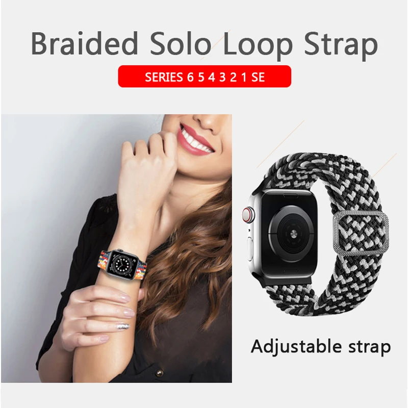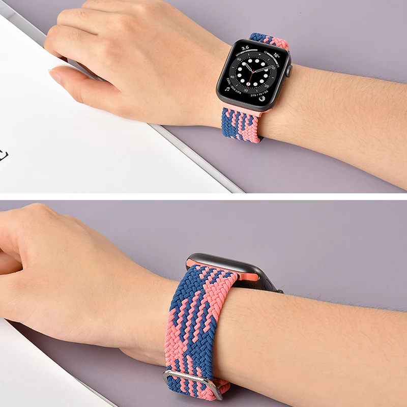 Ремешок плетеный нейлоновый для iWatch Series 6 SE 5 4 3, эластичный регулируемый браслет для Apple Watch band 44 мм 40 мм 38 мм 42 мм