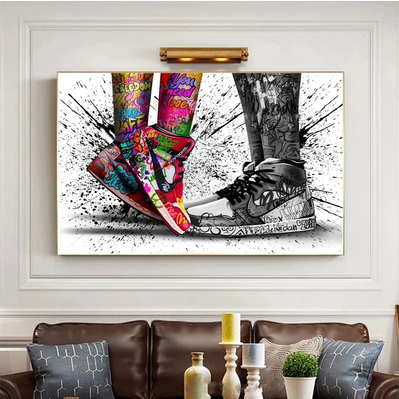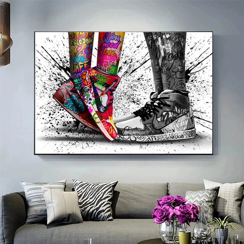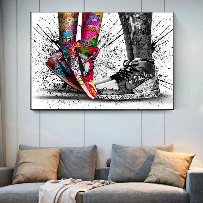 Уличный граффити Искусство Влюбленные кроссовки картина маслом холст настенные художественные Плакаты для гостиной домашний декор квадраты