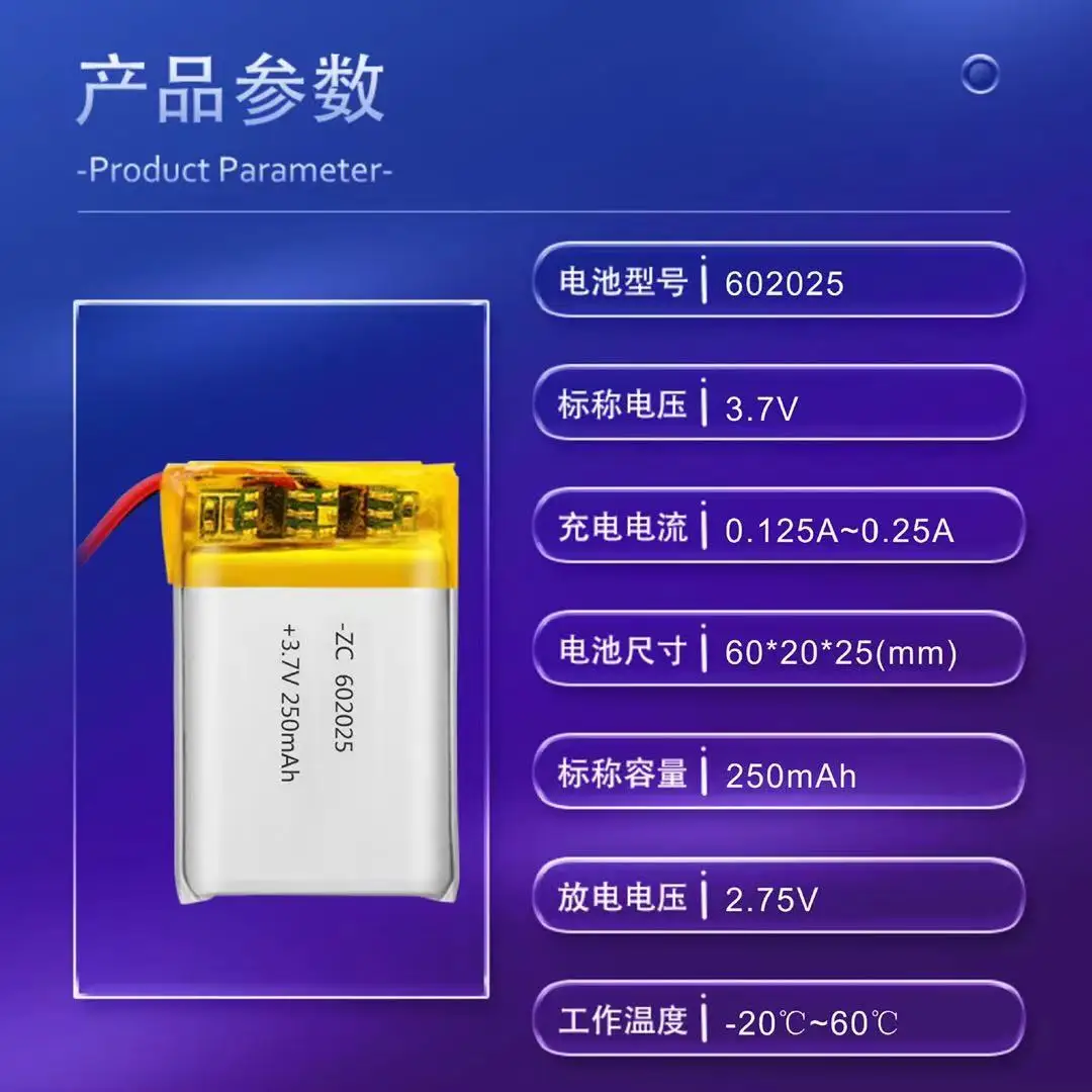 Полная емкость 3,7 V литий-полимерный аккумулятор 602025 250 мА/ч, MP3 динамик навигатора мобильного источника питания 3D очки схема плюс защита
