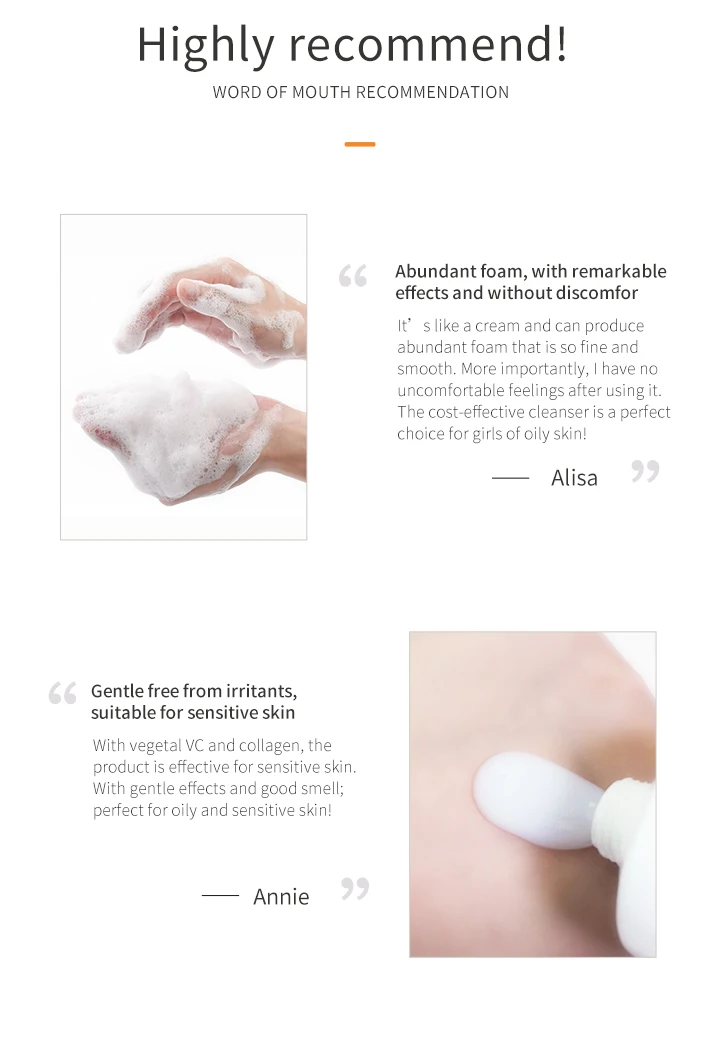 Рекомендации по устаОбильная пена с замечательным эффектом и без дискомфортаЭто как крем, и может производить обильную пену, которая очень тонкая и гладкая. Что более важно, после использования у меня нет неудобств. Недорогое очищающее средство-идеальный выбор для девушек с жирной кожей!--- АлисаНежный, не раздражающий, подходит для чувствительной кожиВегетальный ВК и коллаген эффективен для чувствительной кожи. С мягким эффектом и приятным запахом; Идеально подходит для жирной и чувствительной кожи!-- Энни