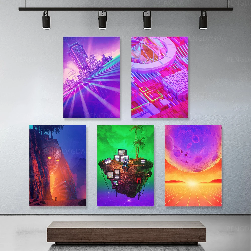 Плакат с принтом планетарный киберпанк, настенное искусство, красочный пейзаж, картина, Современный домашний декор, модульная рамка для картин для спальни