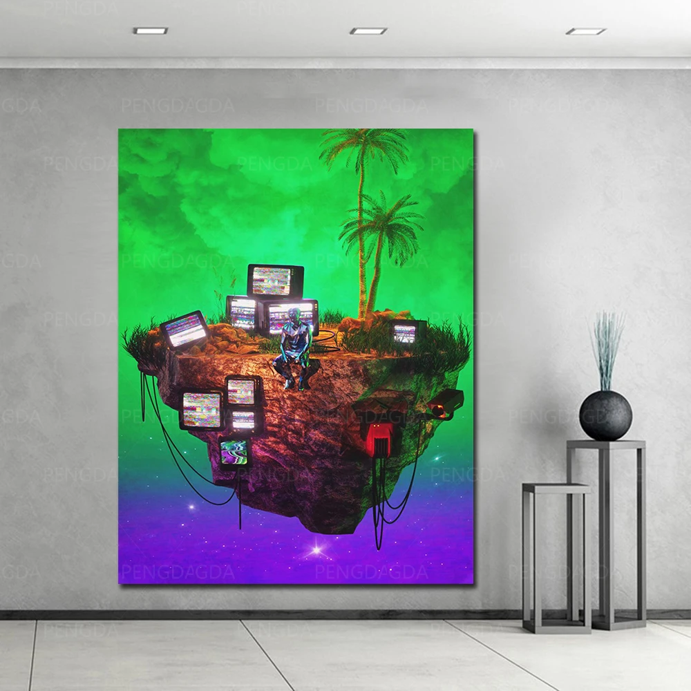 Холст для украшения дома Vaporwave, настенный неоновый плакат, моду...
