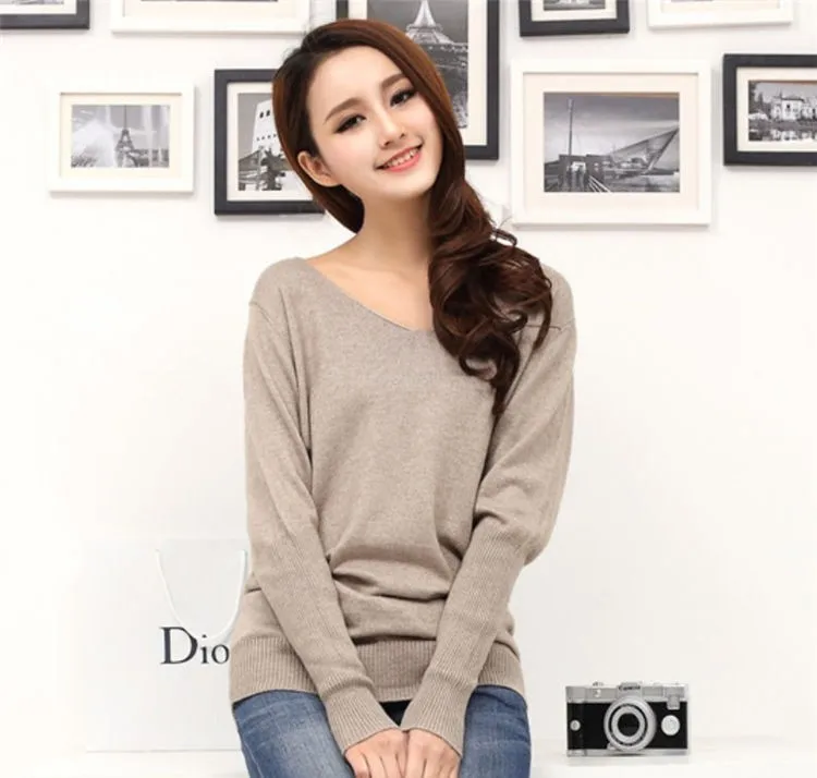 Женский трикотажный свитер с V-образным вырезом и рукавом летучая мышь