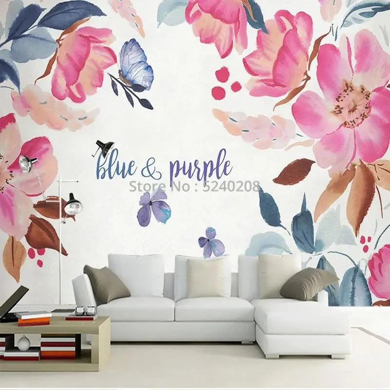 Пользовательские обои Современные Простые ручная роспись цветы фрески гостиная спальня домашний Декор водонепроницаемый холст 3D Наклейка на стену Tapet