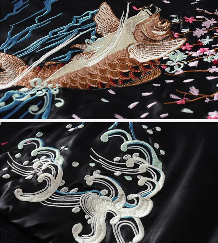 Куртка Yokosuka 2019 с вышивкой карпа, модная свободная бейсбольная...